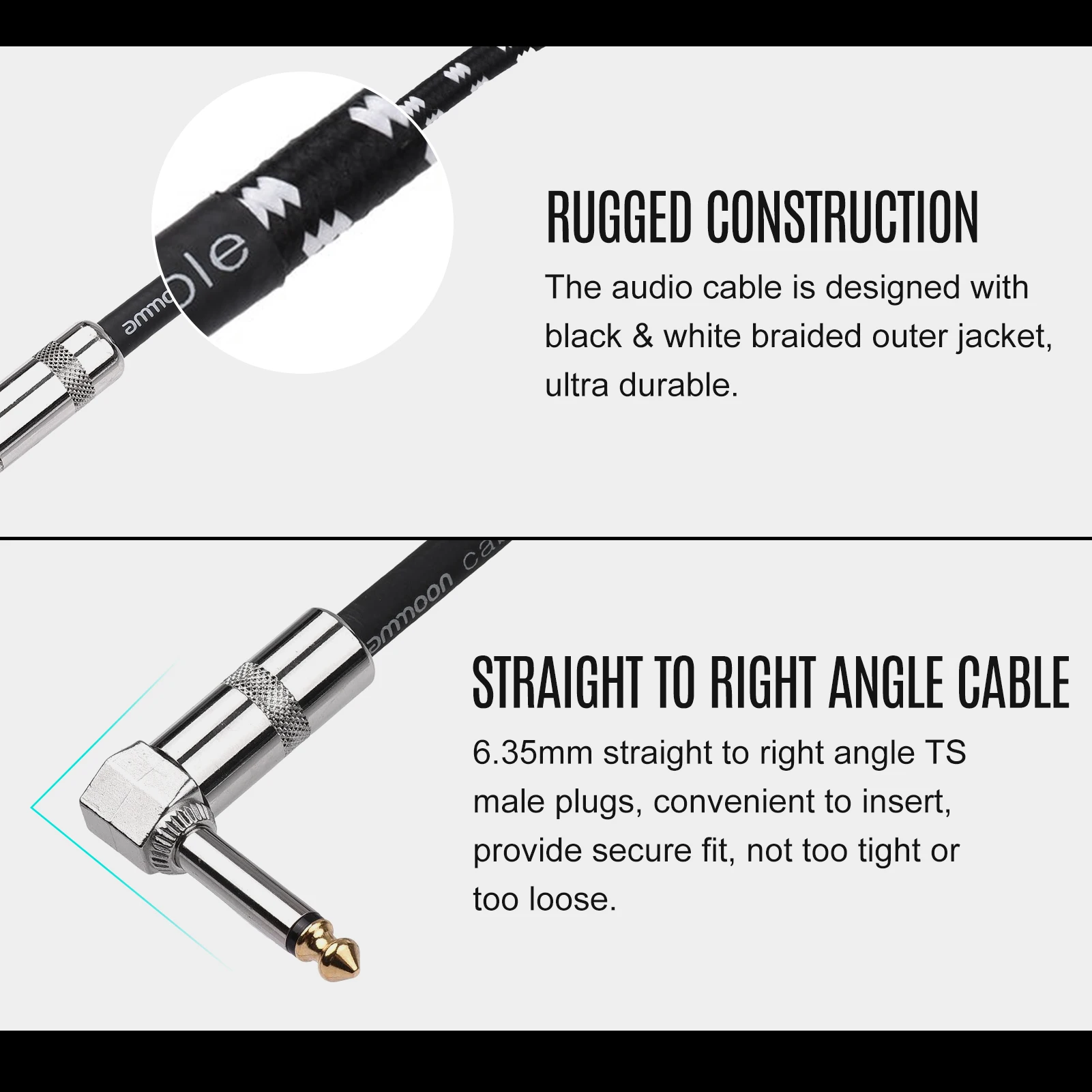 1/4 дюймов (6,35 мм) прямо к правый угол TS штекерами, удобно для того, чтобы вставить, обеспечивает надежную фиксацию, не слишком плотно или слишком свободно.