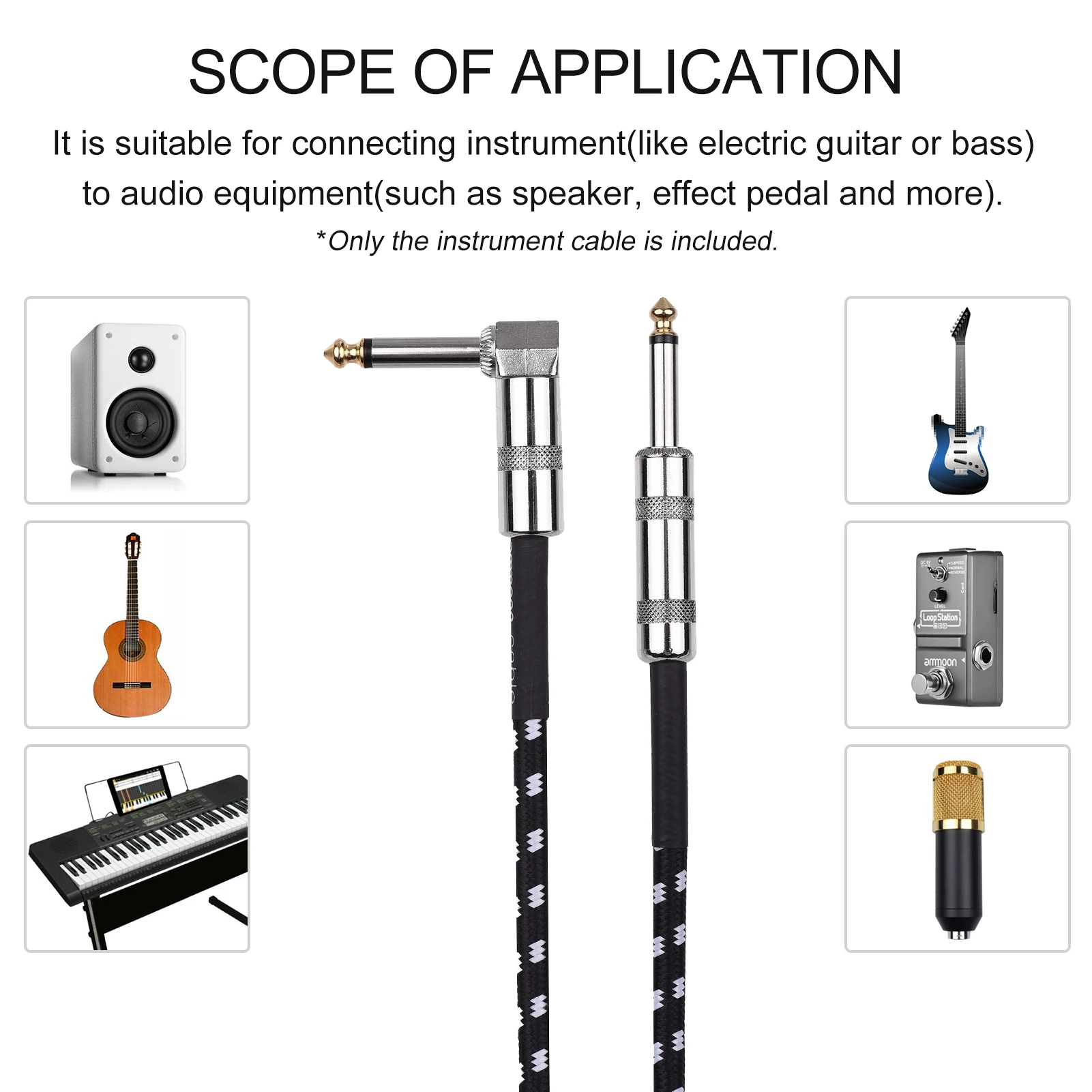 Подходит для подключения инструмента (например, электрогитары или басов) к аудиооборудованию (например, динамику, педаль эффектов и т. д.).