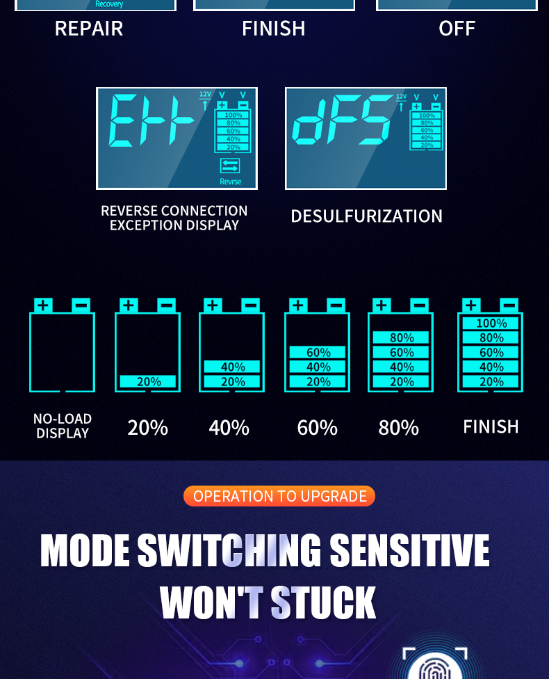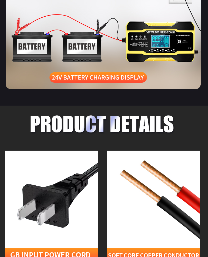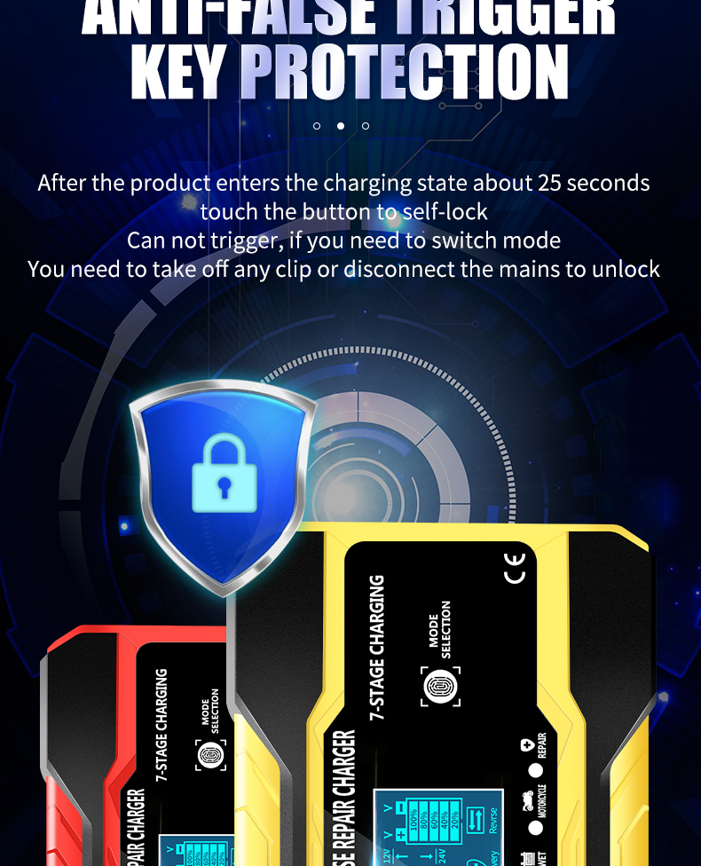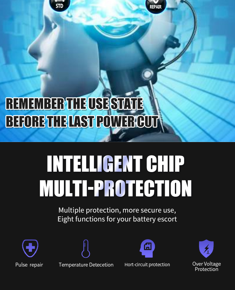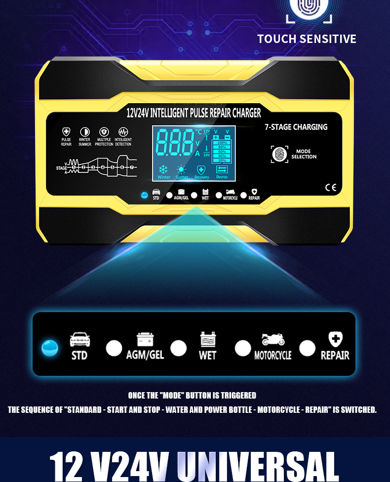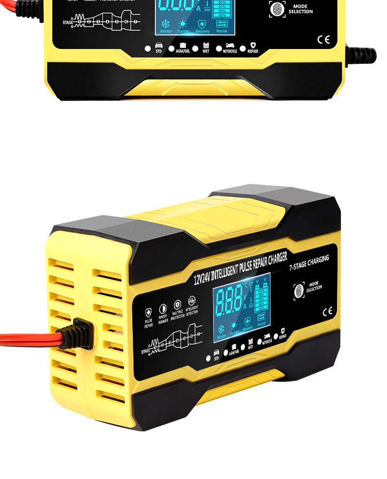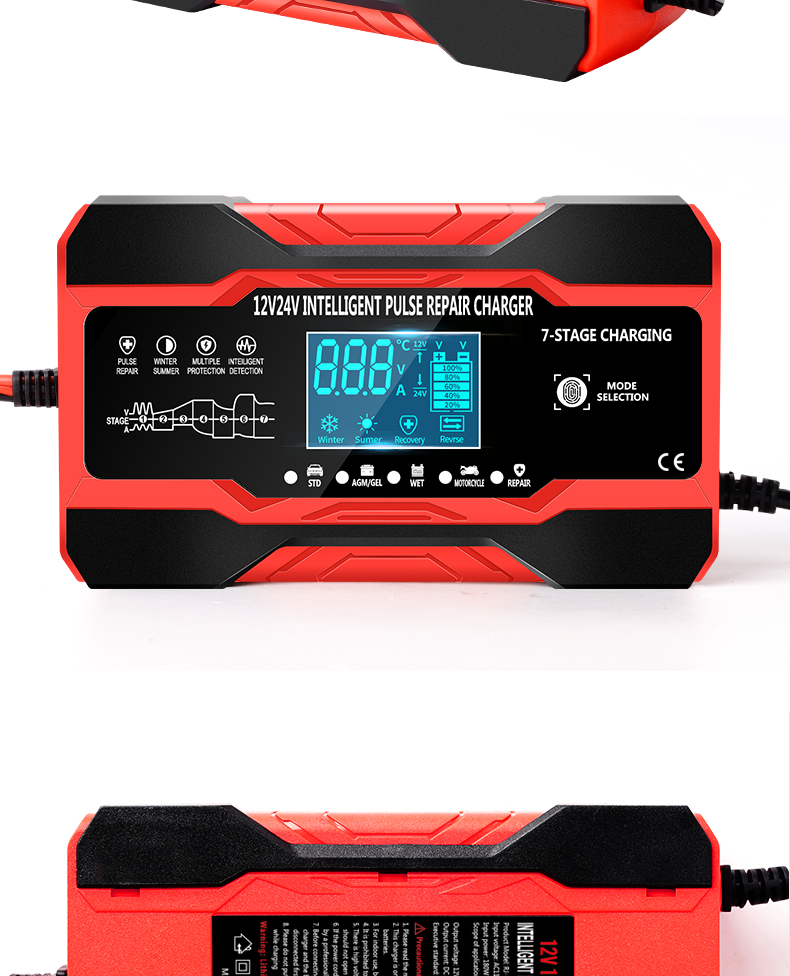 Описание: Управление микропроцессором (ЦП). 1. Умная автоматическая зарядка: 2. Это полностью автоматическое зарядное устройство. 3. Автоматическая зарядка защищает ваш аккумулятор от перезарядки. Таким образом, вы можете оставить зарядное устройство, подключенное к батарее на неопределенный срок. 4. Зарядные устройства подходят для большинства типов батарей, включая кальций, гель и AGM, влажные батареи. Они также могут помочь восстановить сливные и сульфированные батареи. 5. Типы батарей: большинство типов свинцово-кислотных батарей, включая кальций, гель и AGM, влажные, EFB и т. Д. Характеристика: Технология сенсорного переключателя: Да Защита полярности: Да Выходная короткая Защита: да Защита без подключения аккумулятора: Да Защита от перегрева: Да Защита от короткого замыкания: Да Защита от перегрузки по току: Да Защита от перегрева: Да Противопожарная Защита: да Защита от низкого напряжения: Да Защита от перенапряжения: Да Обратная Защита: да Защита от электрического удара: Да Охлаждение: Вентилятор Цвет: желтый/красный Спецификация: Входное напряжение: 110-220 В переменного тока, 50-60 Гц Номинальная мощность: 12V 10A , 24V 5A Длина выходной линии: 65 см Мощность: 180 Вт Несколько режимов: автомобиль/мотоцикл/AGM/гель/свинцово-кислотный Режим: лето/зима Дисплей: напряжение, ток, температура, ремонт, завершение, обратный Тепловая защита: 65'C +/-5'C Совместимые Стандарты: CE, FC, Rohs, PSE Размер (L×W×H): 158 × 95 × 62 мм Примечание: Это зарядное устройство для емкости аккумулятора от 2ач до 150ач. Пожалуйста, проверьте емкость вашего аккумулятора перед покупкой зарядного устройства! Спасибо! Посылка включает в себя: 1X12/24V импульсный Ремонт ЖК-зарядное устройство