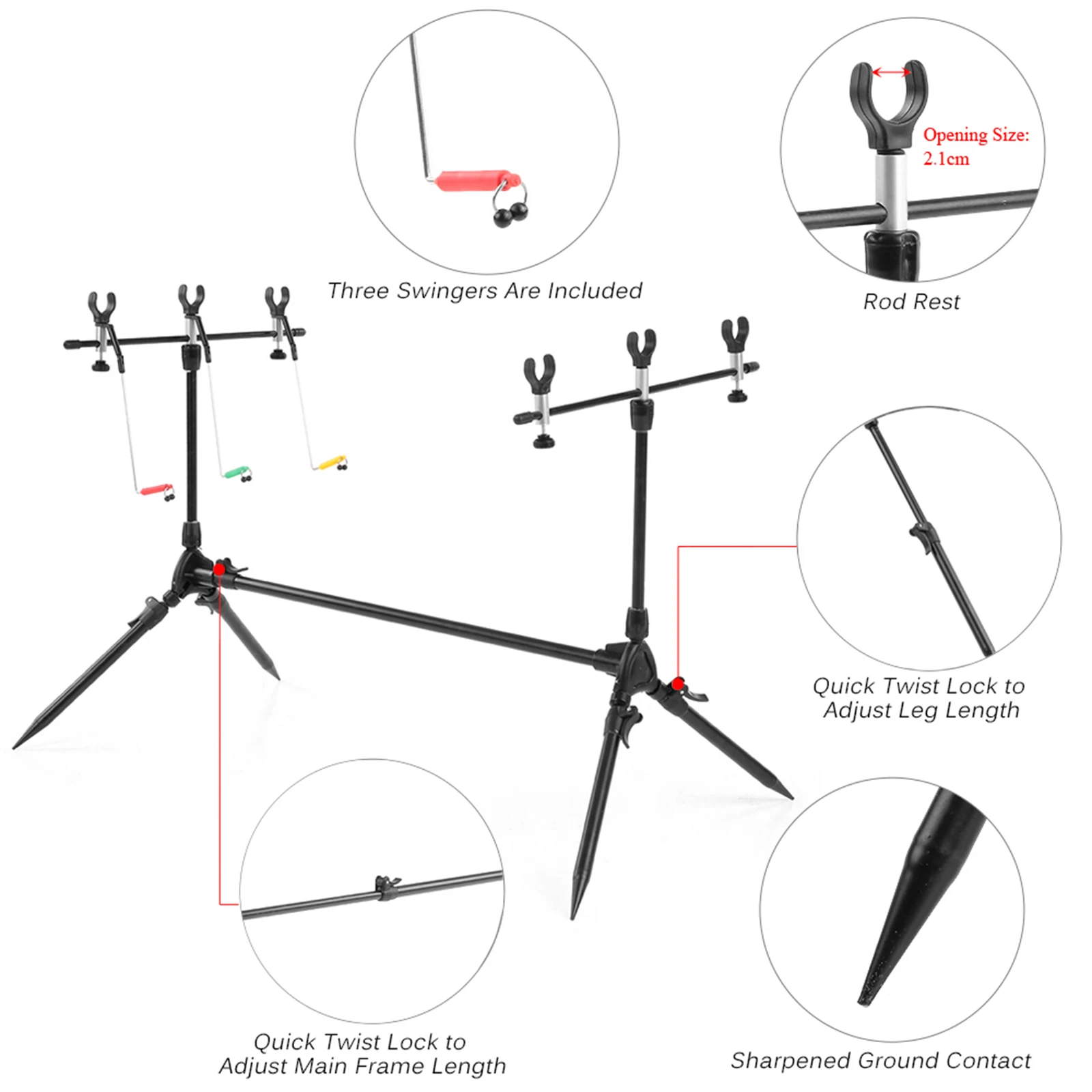 Этот легкий стержень предназначен для использования в тех менее доступных местах для рыбалки, где использование банковских палочек невозможно. Легко хранить с прочной холщовой упаковкой для переноски и быстро установленная стойка для удочек позволяет быстро погружаться в плавание.