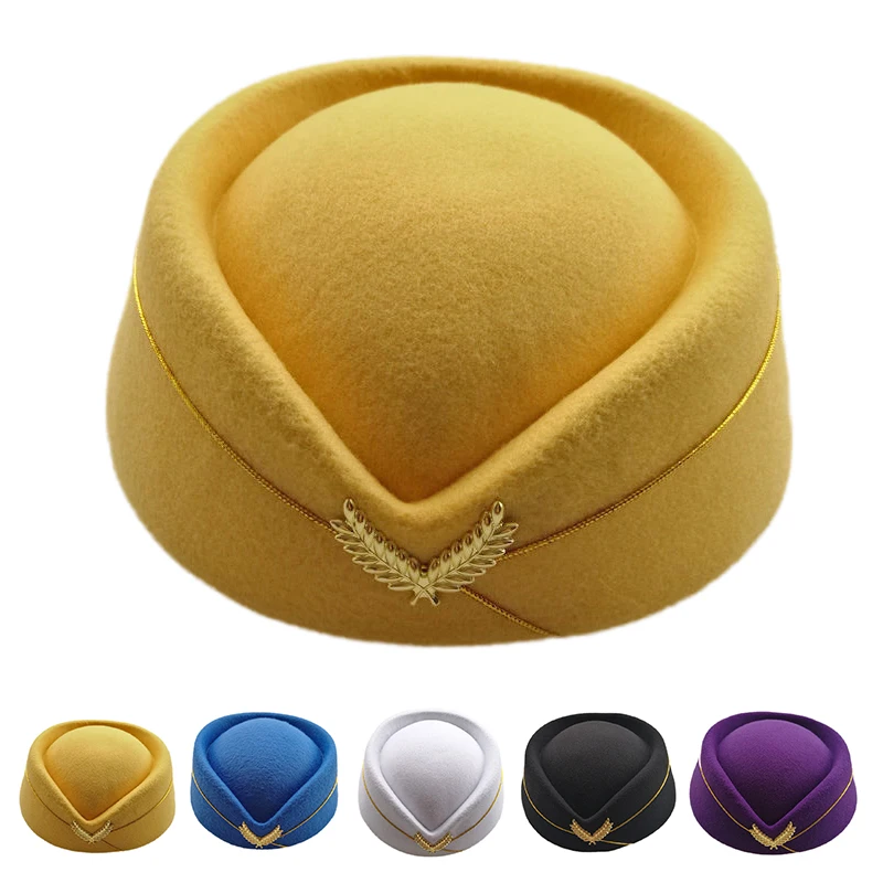 Женская шапка, трендовая шерстяная войлочная воздушная хоста, берет, Золотой значок, сексуальная официальная форма, шапки, зимние аксессуары