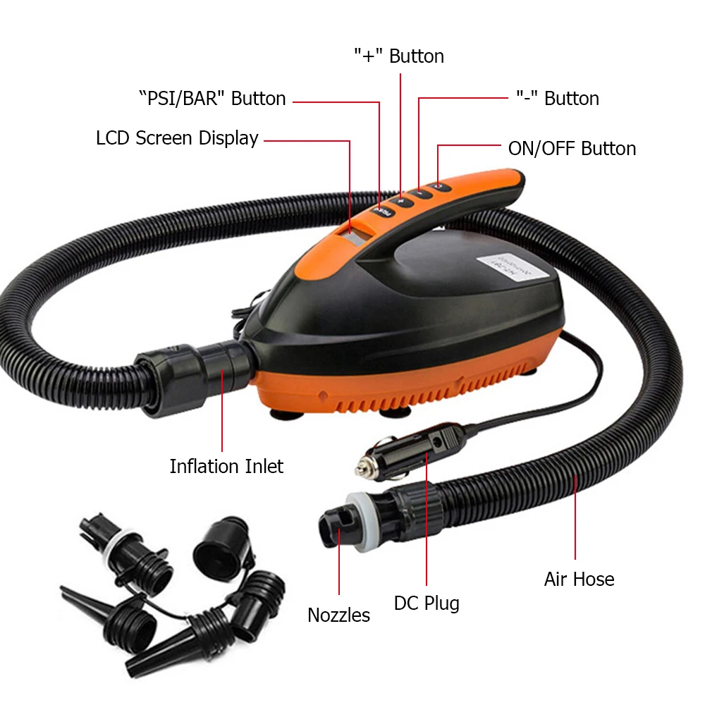 Оснащен 12V DC коннектором 12V DC power, с 3 футами длинного воздушного шланга вы можете надуть ваше оборудование более легко.