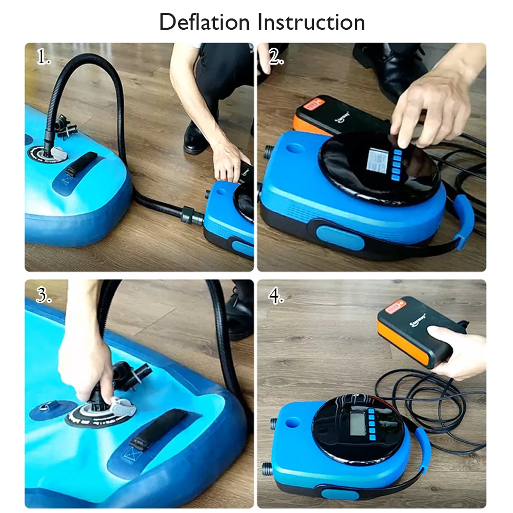 С помощью этого мощного воздушного насоса вы можете легко надуть ваше оборудование для водных видов спорта и наслаждаться вашей поездкой по морю.