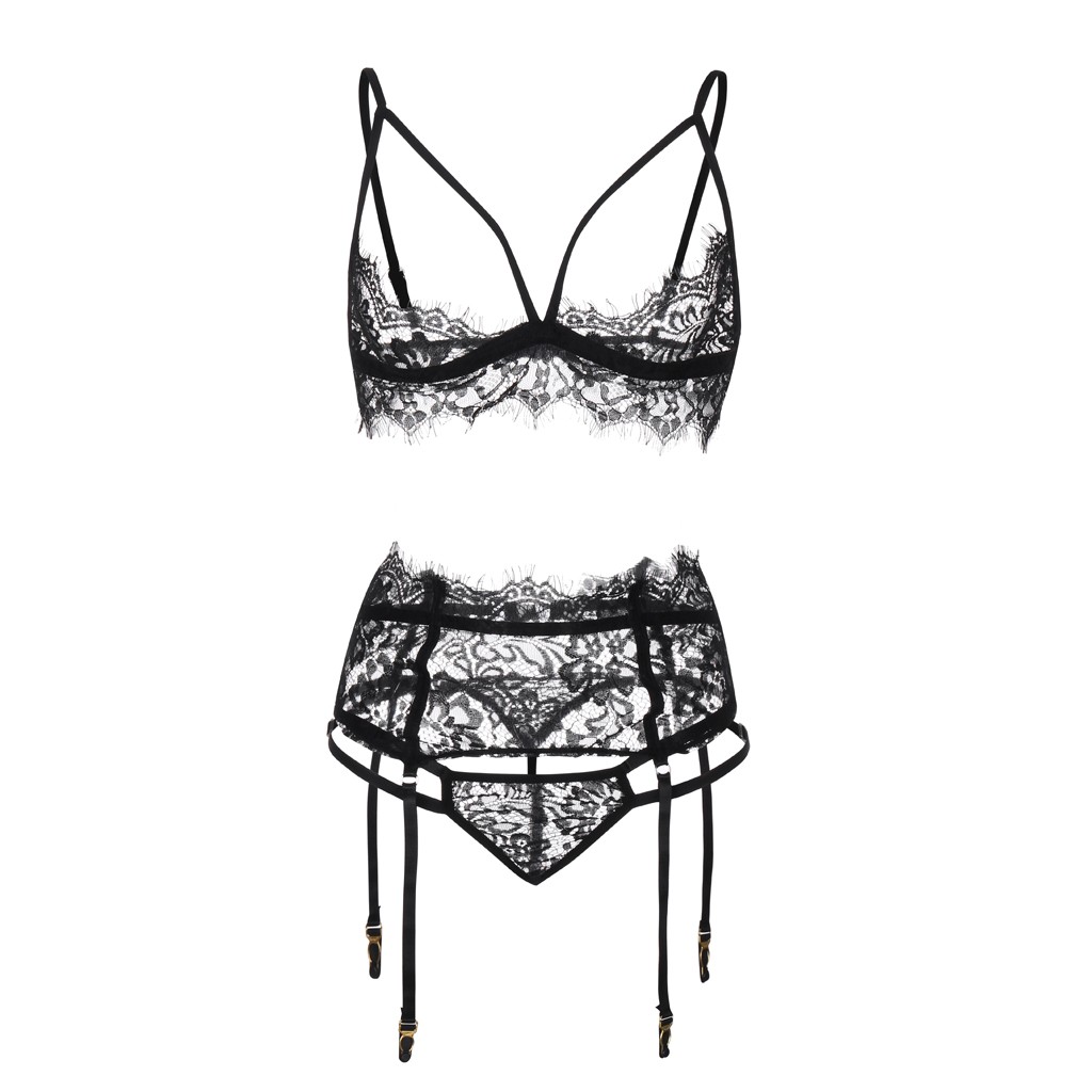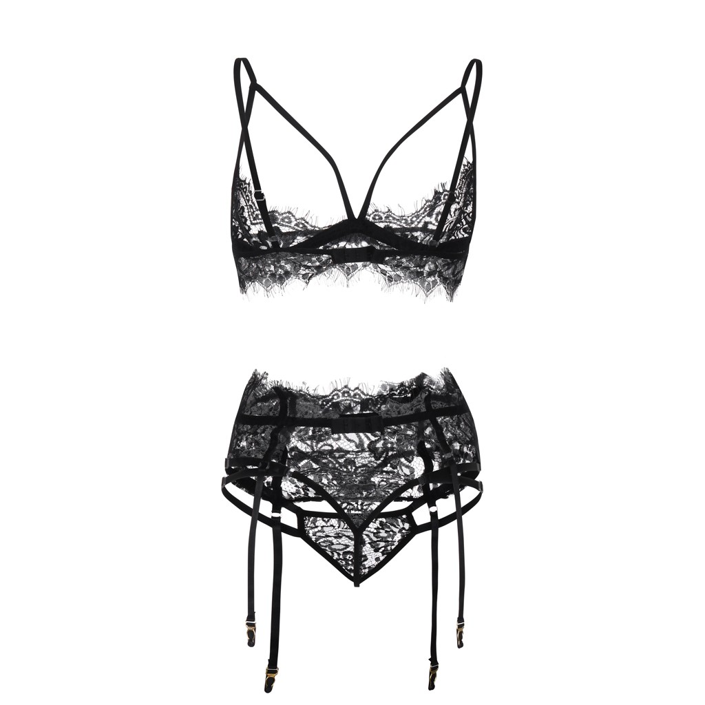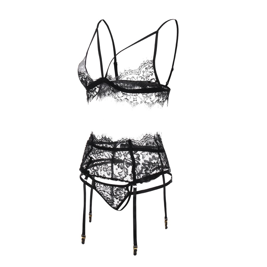 Женское нижнее белье с кружевной вышивкой, комплект прозрачного сексуального чувственного женского белья, Эротический бюстгальтер с подвязкой