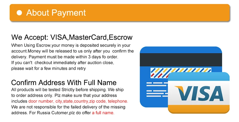 1) Мы отправим товар по умолчанию, если вы не сообщите нам об этом. Пожалуйста, убедитесь, что ваш адрес доставки верен.