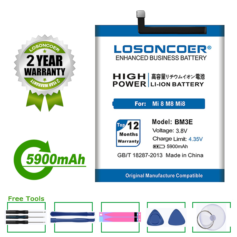 Аккумулятор LOSONCOER 5900 мАч BM3E для Xiaomi Mi 8 Mi8 M8 мобильный телефон + Бесплатные инструменты в наличии