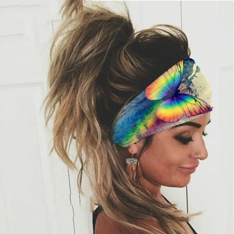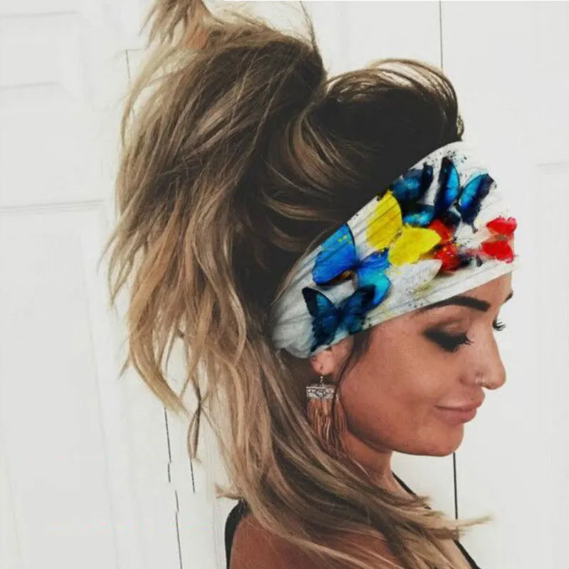 Впитывающая Пот повязка на голову, эластичная повязка на голову, Спортивная широкая версия, повязка на голову, женский головной убор, красочная бабочка, модная повязка на голову