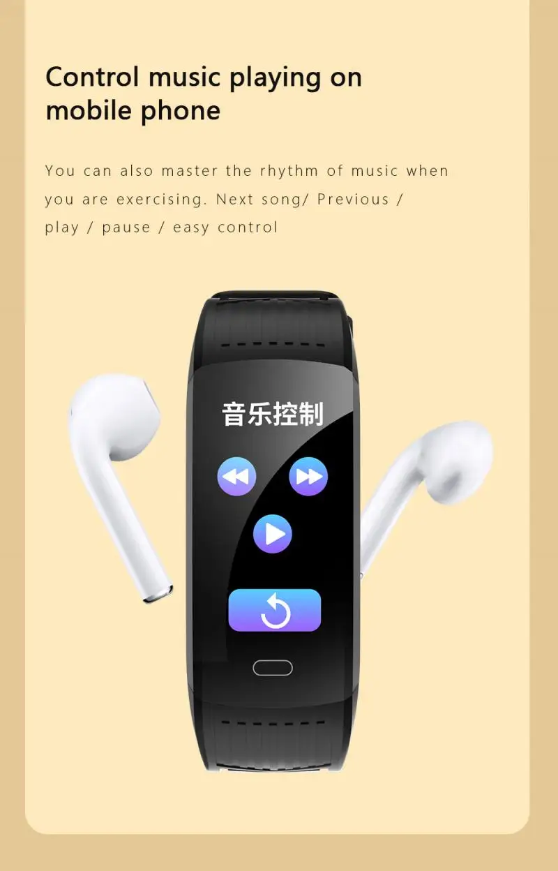 Main functions: heart rate monitoring, step counting, calorie burning, distance, RTC display, automatic sleep monitoring, call reminder, message push, alarm clock reminder, anti-lost, remote camera, weather, multi-language, custom UI, music control, etc.