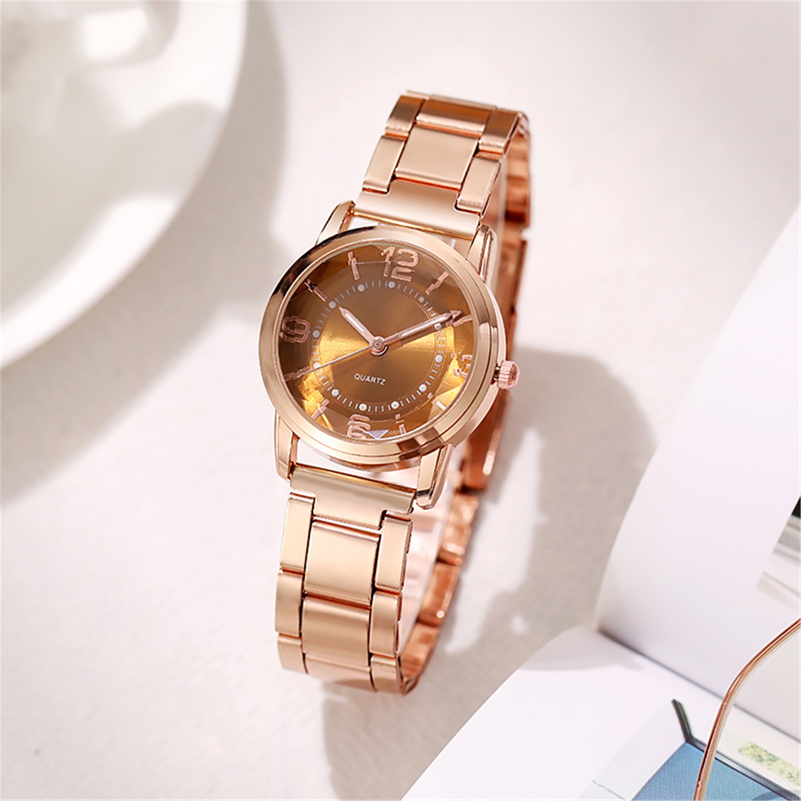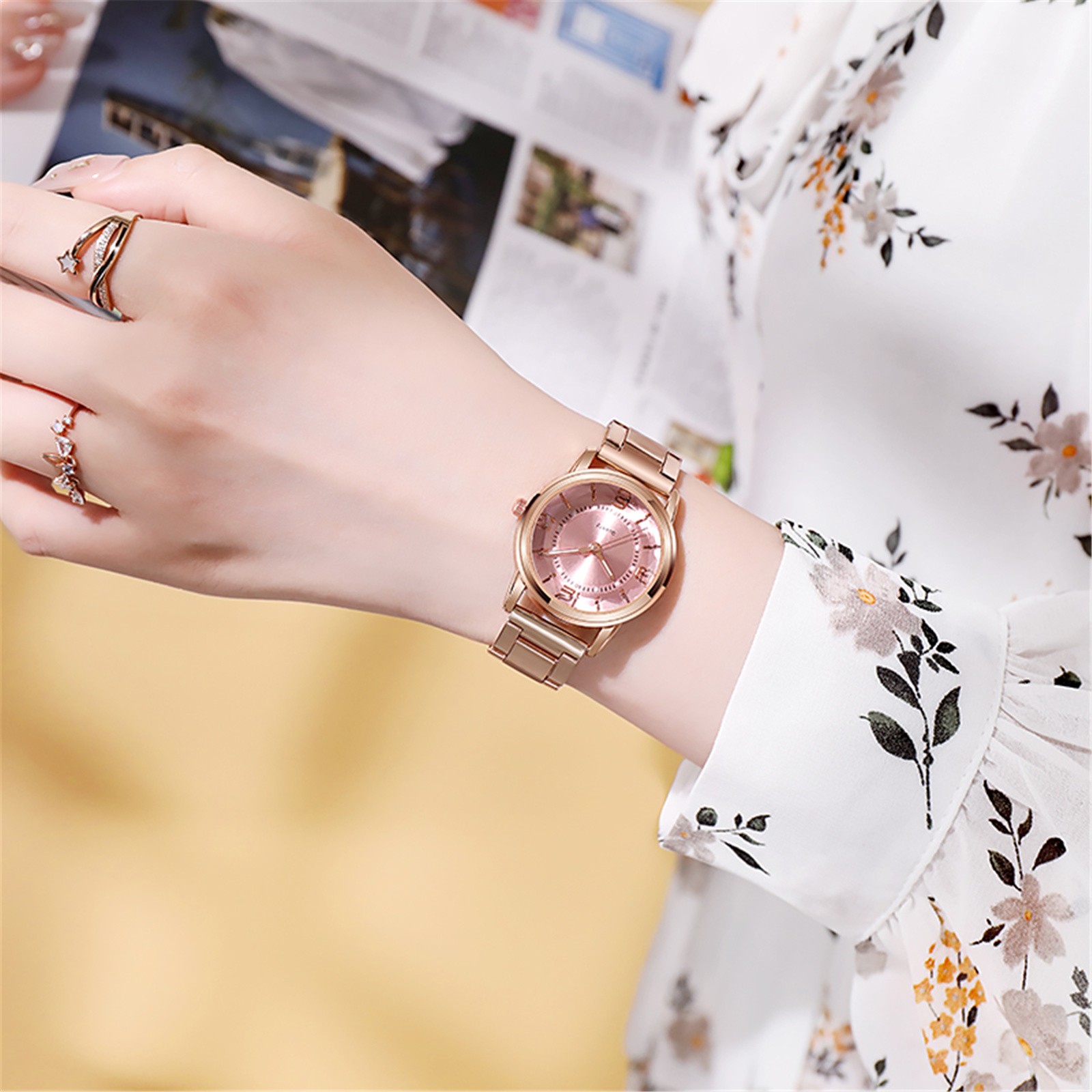 Женские темпераментные светящиеся кварцевые часы со стальным ремешком из стекла и сплава