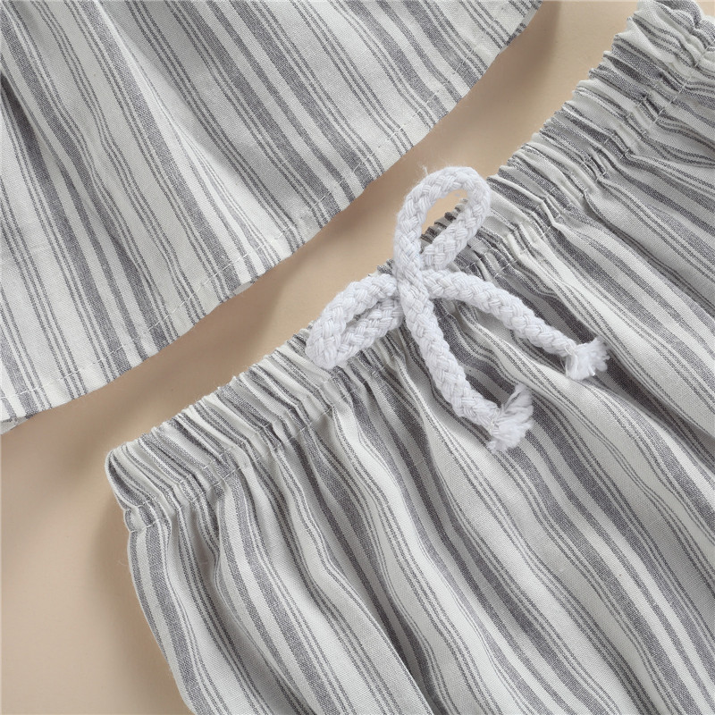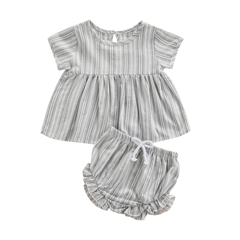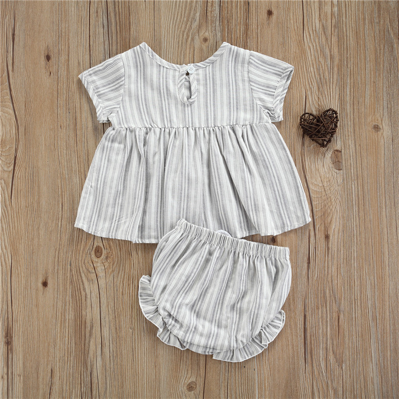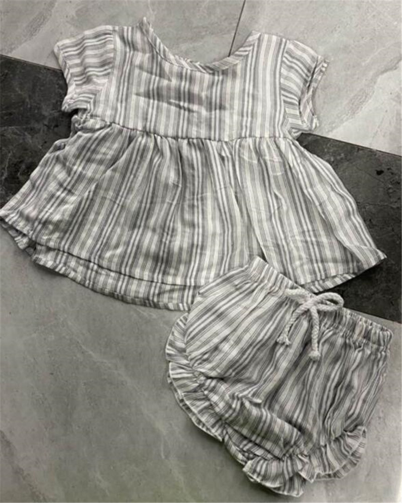 Футболка в полоску с короткими рукавами для маленьких девочек и шорты с оборками костюм из двух предметов