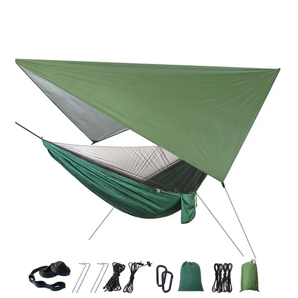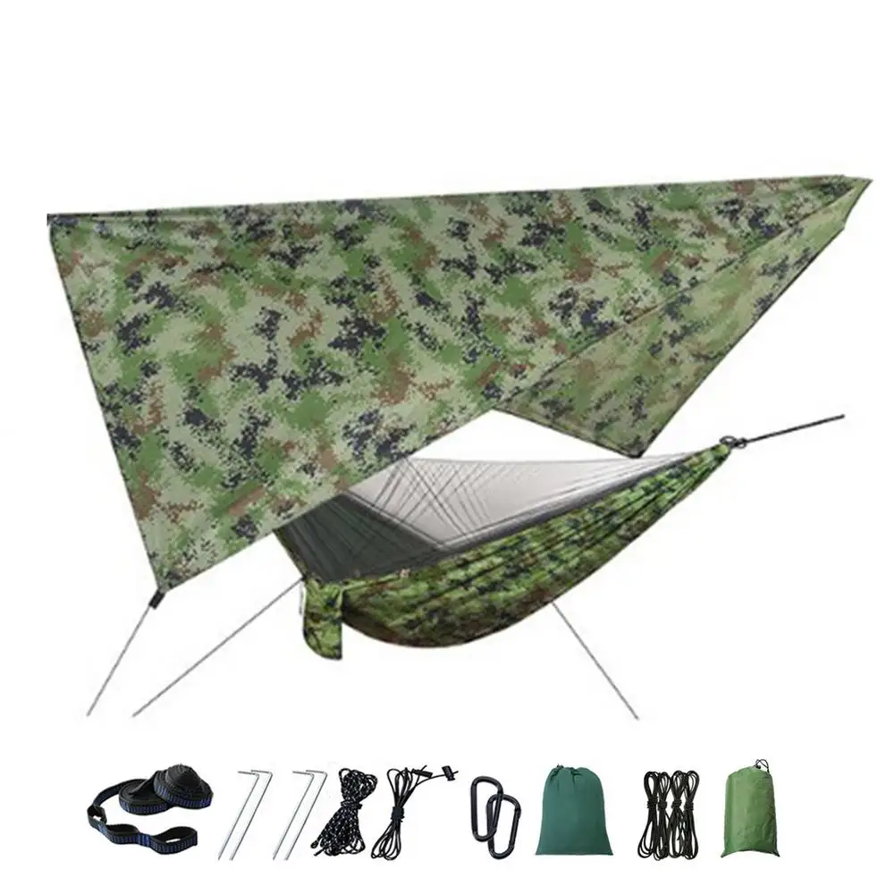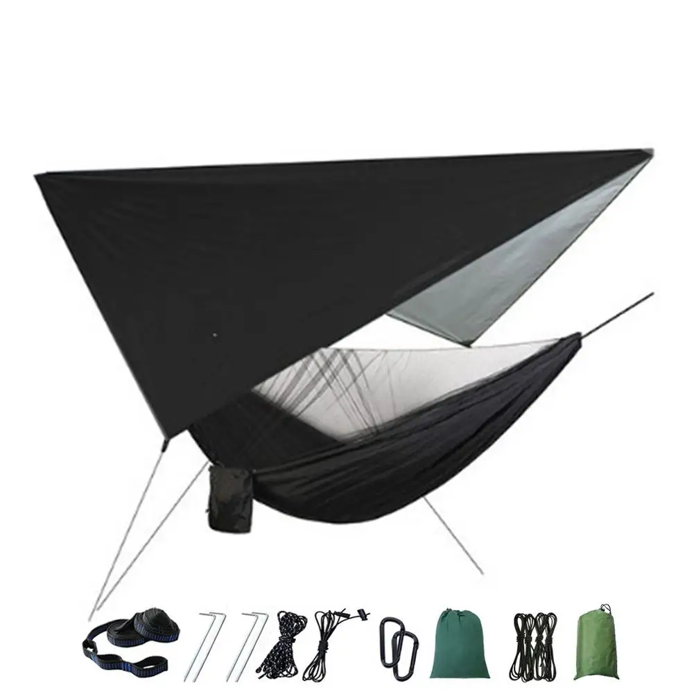 Комплект гамака для кемпинга на открытом воздухе, гамак с сеткой для жуков и дождем, нейлоновая гамака для кемпинга, подвесная спальная кровать, москитная сетка