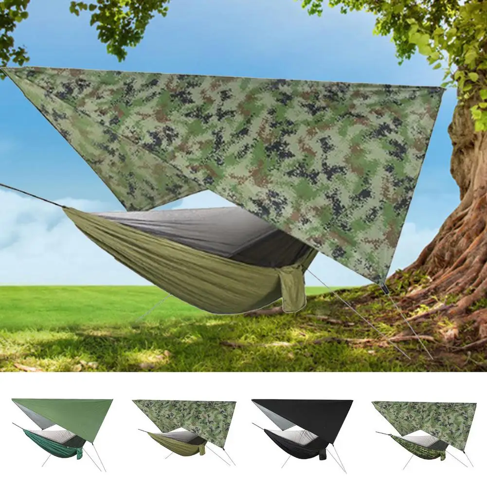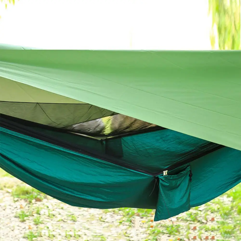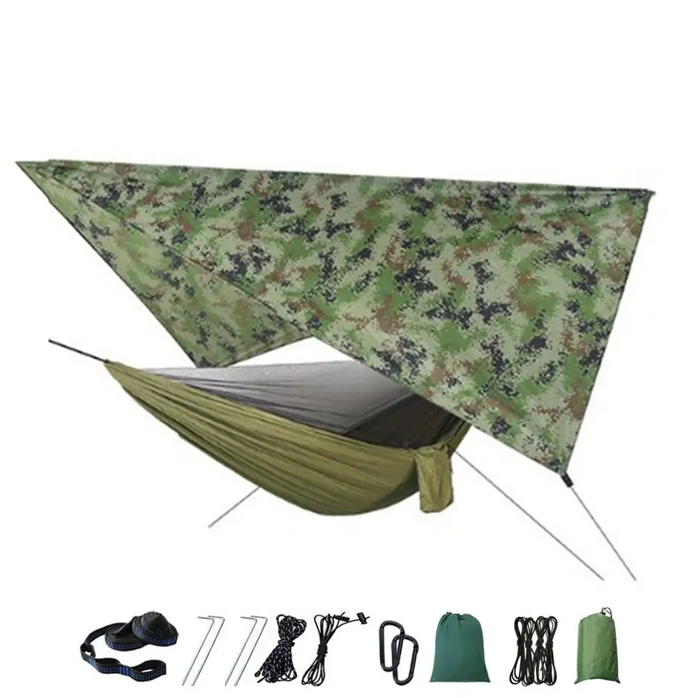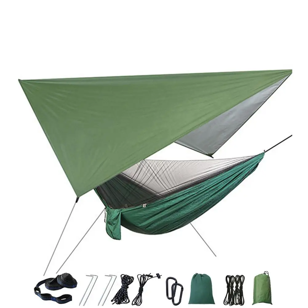 Комплект гамака для кемпинга на открытом воздухе, гамак с сеткой для жуков и дождем, нейлоновая гамака для кемпинга, подвесная спальная кровать, москитная сетка