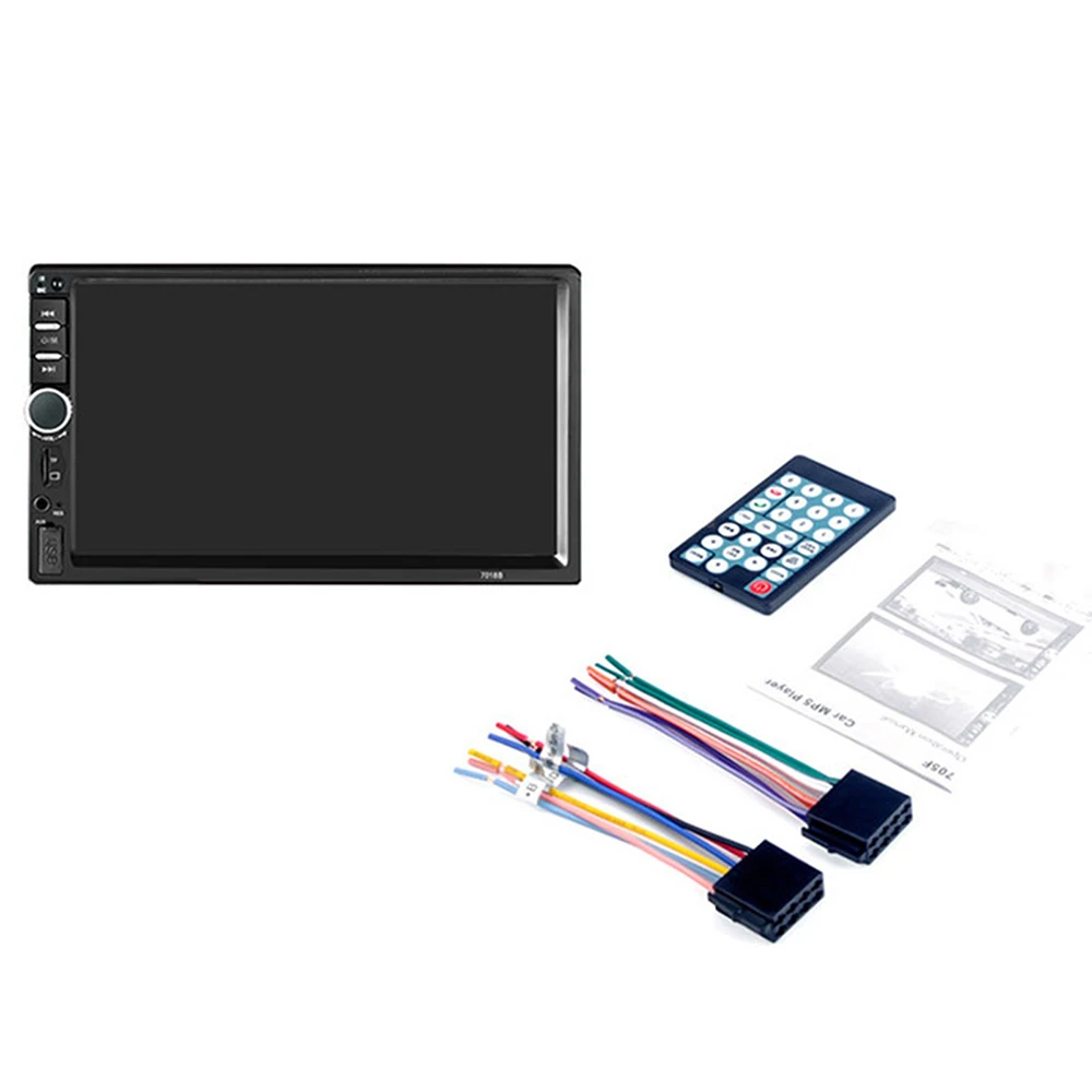 7 inch 2 din 1080P car radio MP5 player supports BT and hands-free calling, USB, TF Card, AUX IN, music player, video player, and other functions.