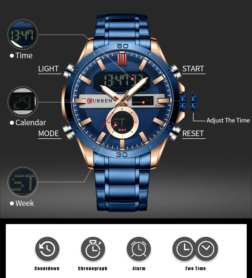 CURREN военные спортивные наручные часы для мужчин повседневные цифровые будильники с датой дня из нержавеющей стали хронограф наручные часы