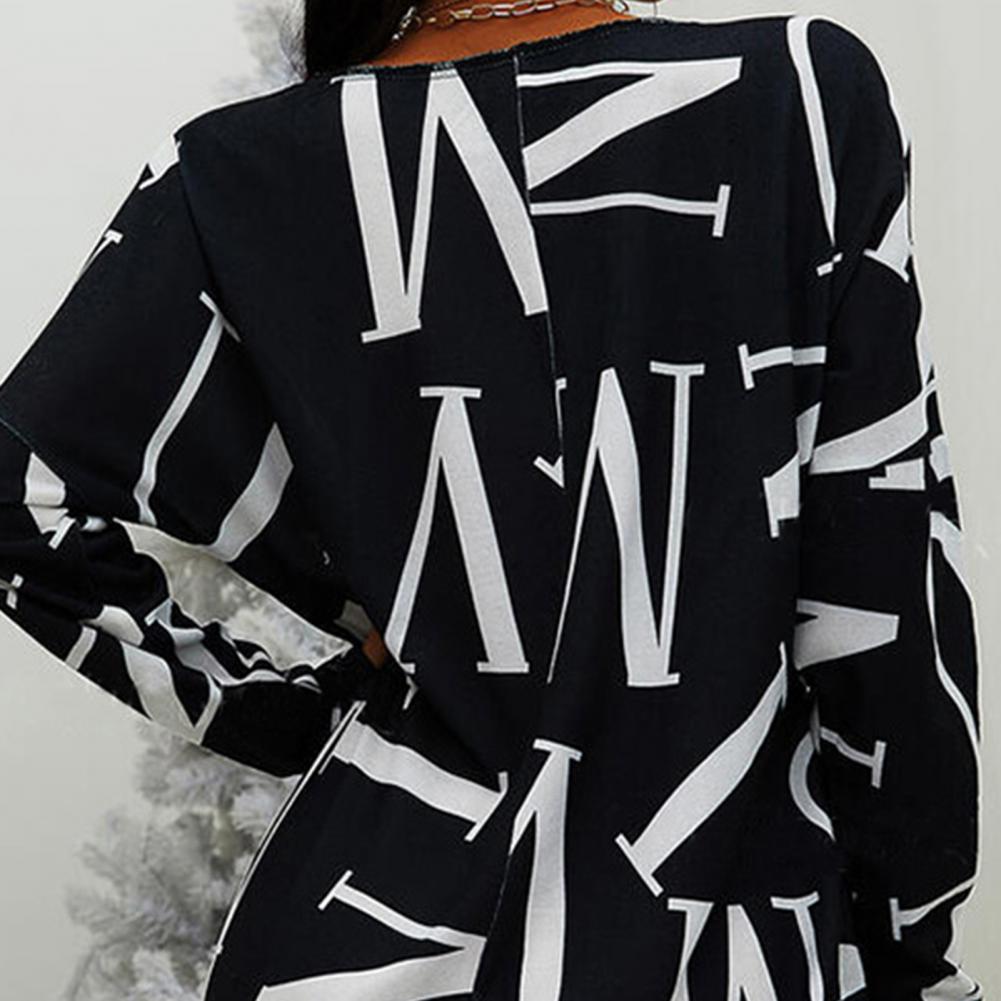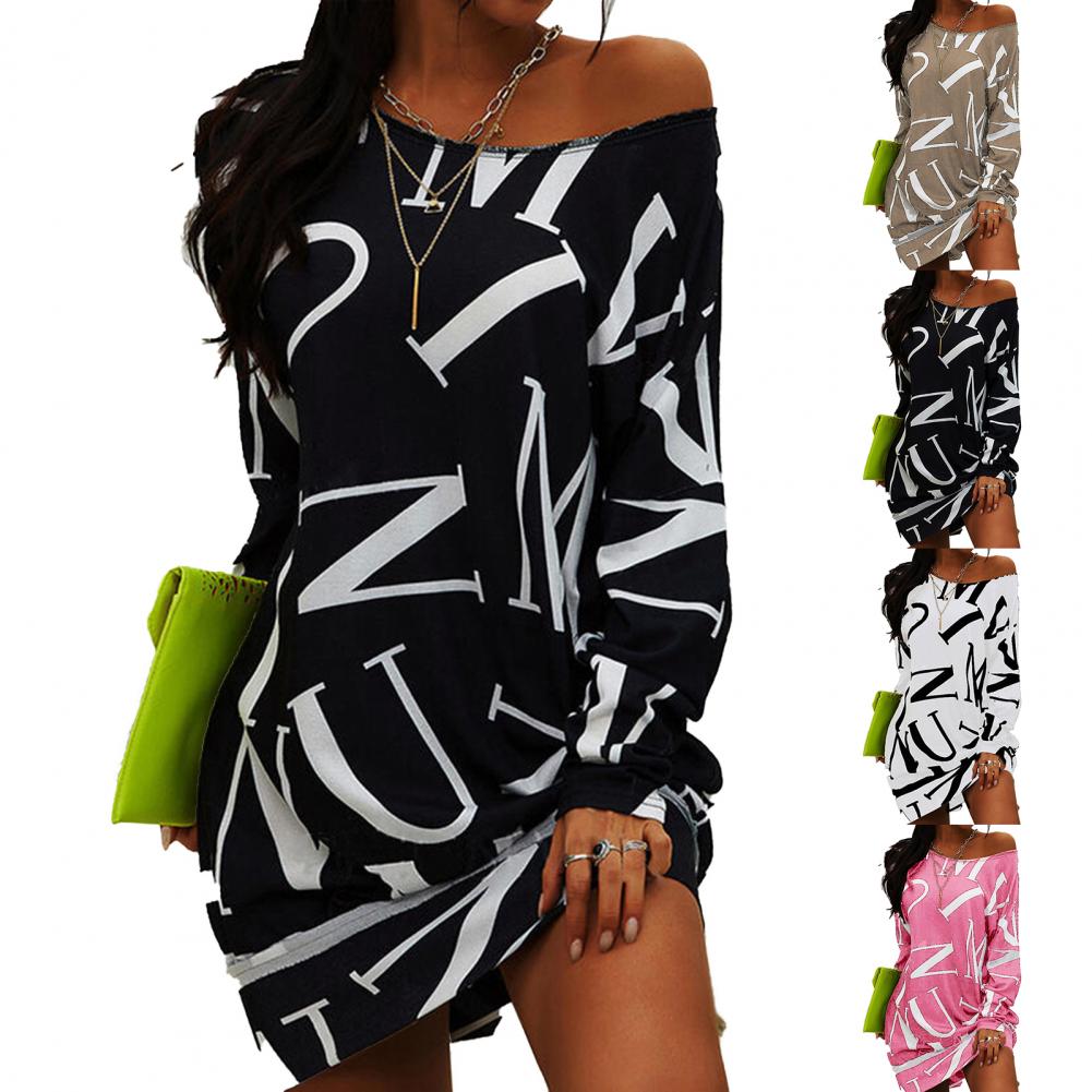 Дизайн с буквенным принтом делает это платье с длинными рукавами и круглым вырезом очень привлекательным и модным.