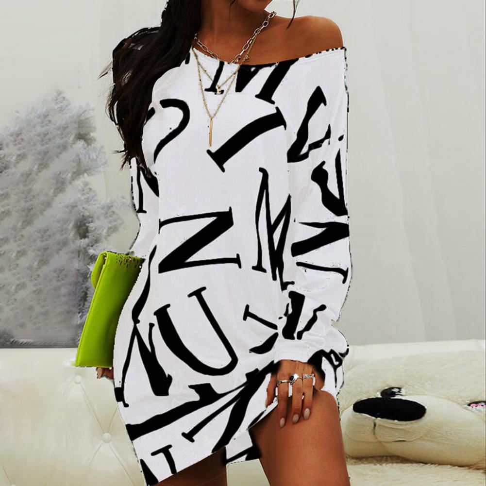 Женская футболка, платье с буквенным принтом, повседневное, белое, черное, в стиле хип-хоп, с длинным рукавом, свободное мини-платье, женские осенние платья большого размера