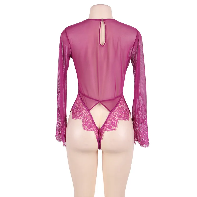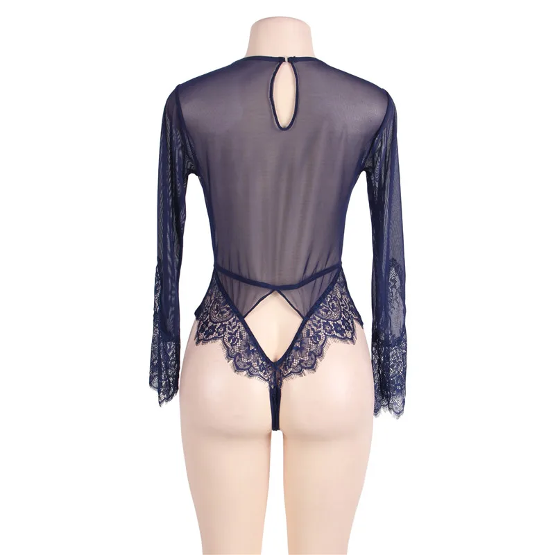 Comeonlover модный кружевной боди для женщин однотонный длинный рукав изысканный большой прозрачный сексуальный дышащий комбинезон