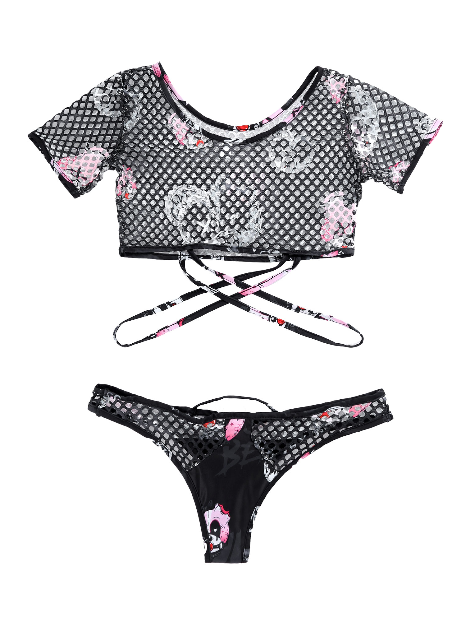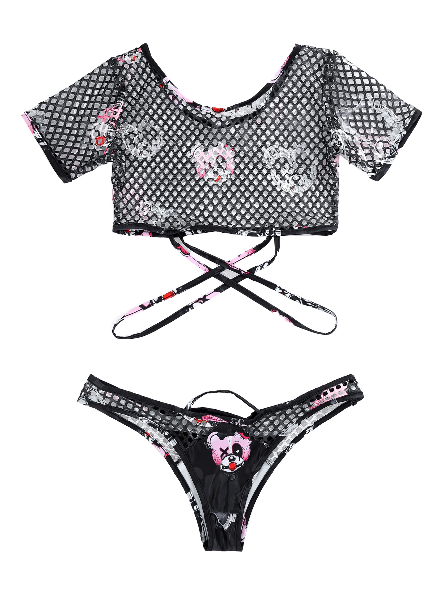 Стильный сетчатый комплект из двух предметов с принтом, делает вас горячим и привлекательным.