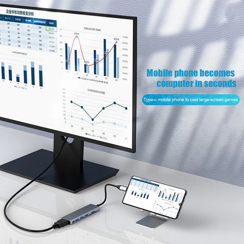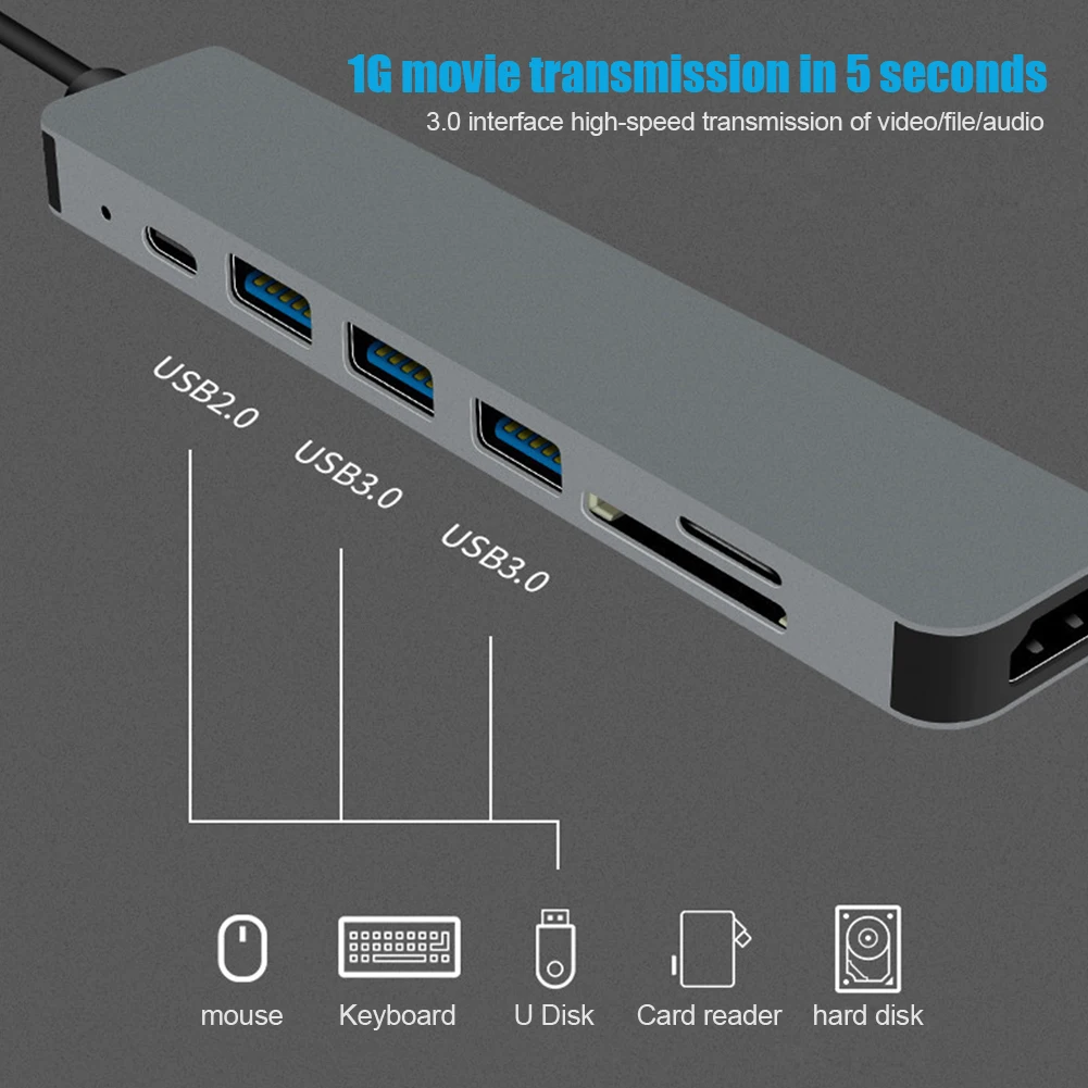 6 в 1 Многофункциональный: Этот Тип-C кабель поставляется с USB-C для зарядки, 2 порта USB 3,0 и 4k порт для HDMI, светодиодный дисплей, SD/TF адаптер; который легко расширяет ваши устройства USB C и выполняет ваше ежедневное использование.