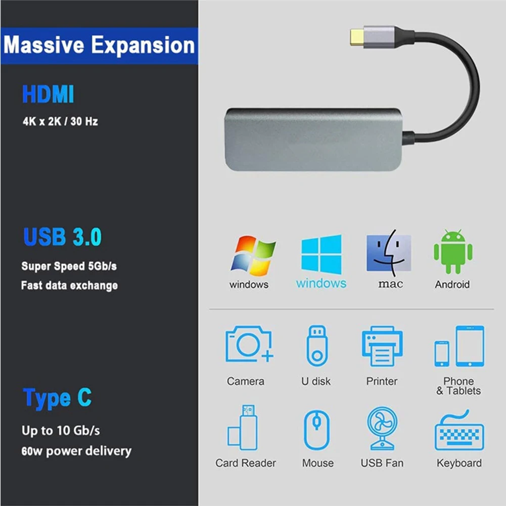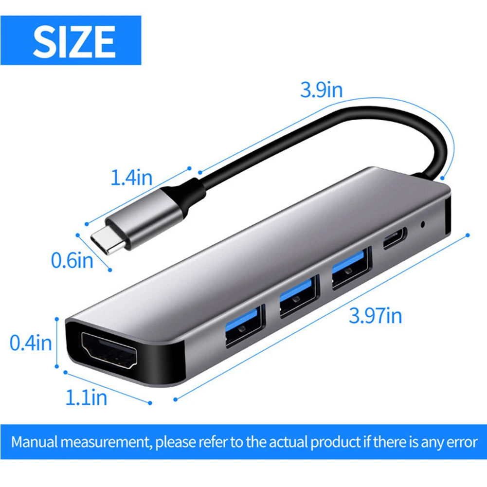 4 в 1 многофункциональная: Этот Тип-C кабель поставляется с USB-C для зарядки, 2 порта USB 3,0 и 4k порт для HDMI, который легко расширяет ваши устройства USB C и выполняет ваше ежедневное использование.