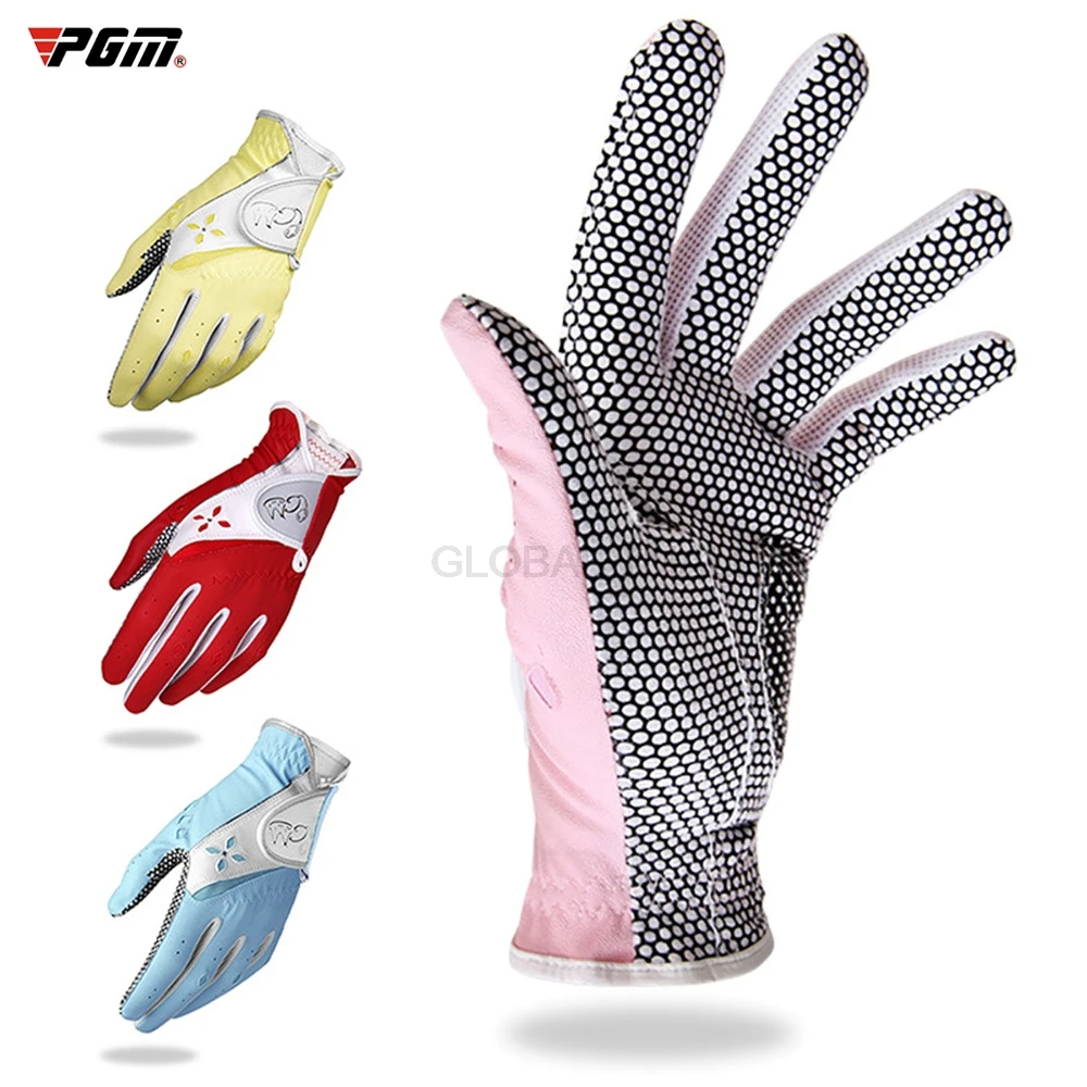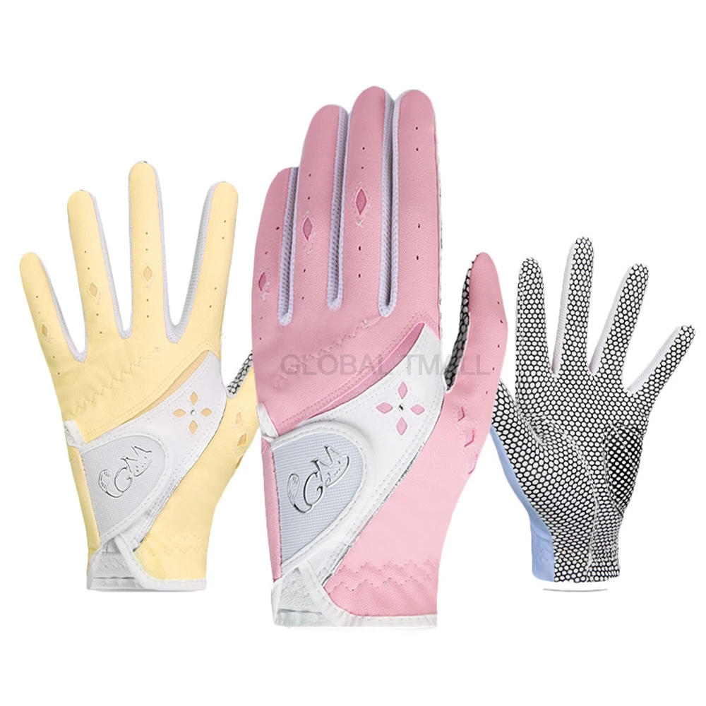 Новые брендовые перчатки для гольфа для женщин и девочек, 4 цвета, желтый, красный, синий, розовый, искусственная кожа, противоскользящие, профессиональные, спортивные