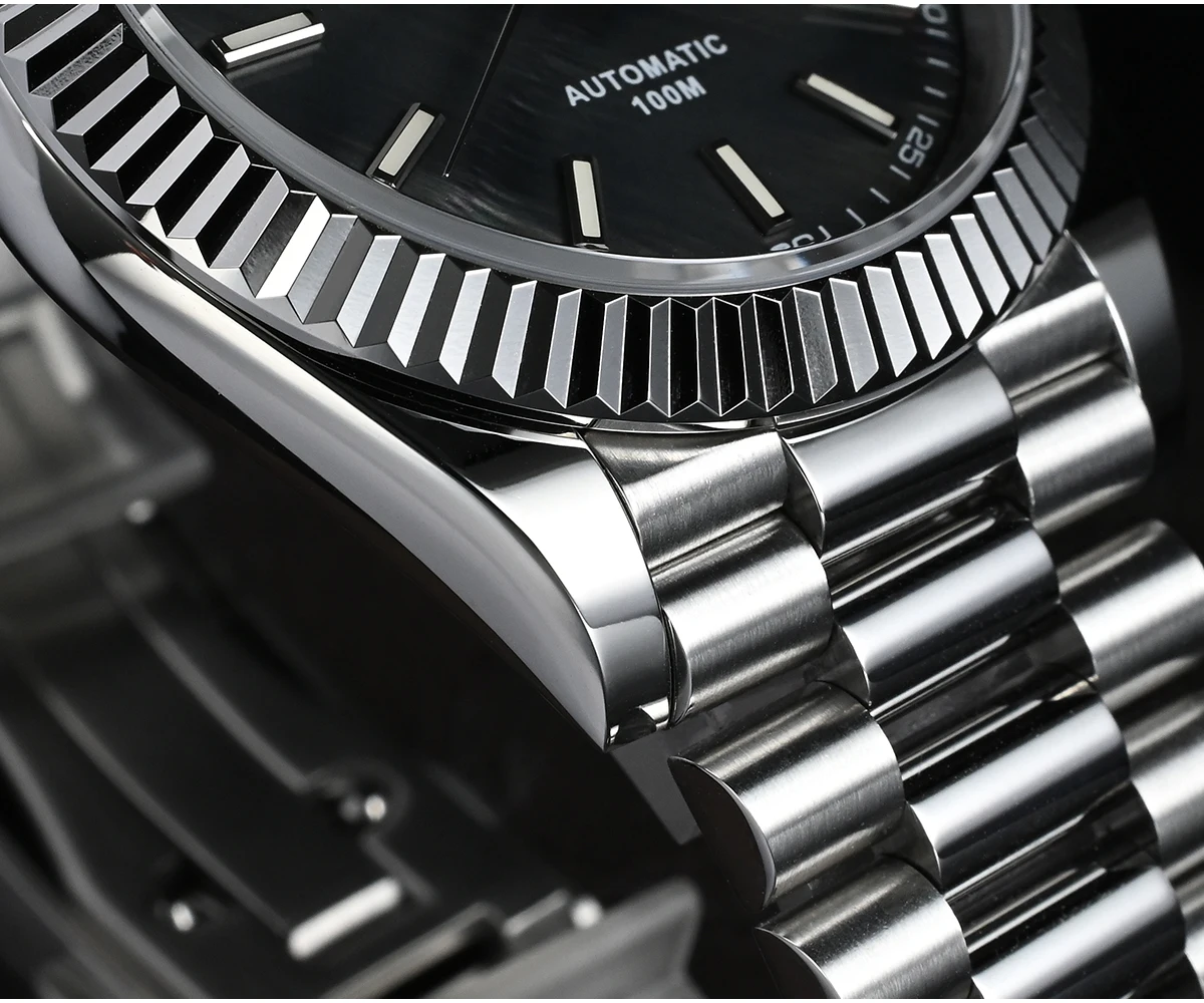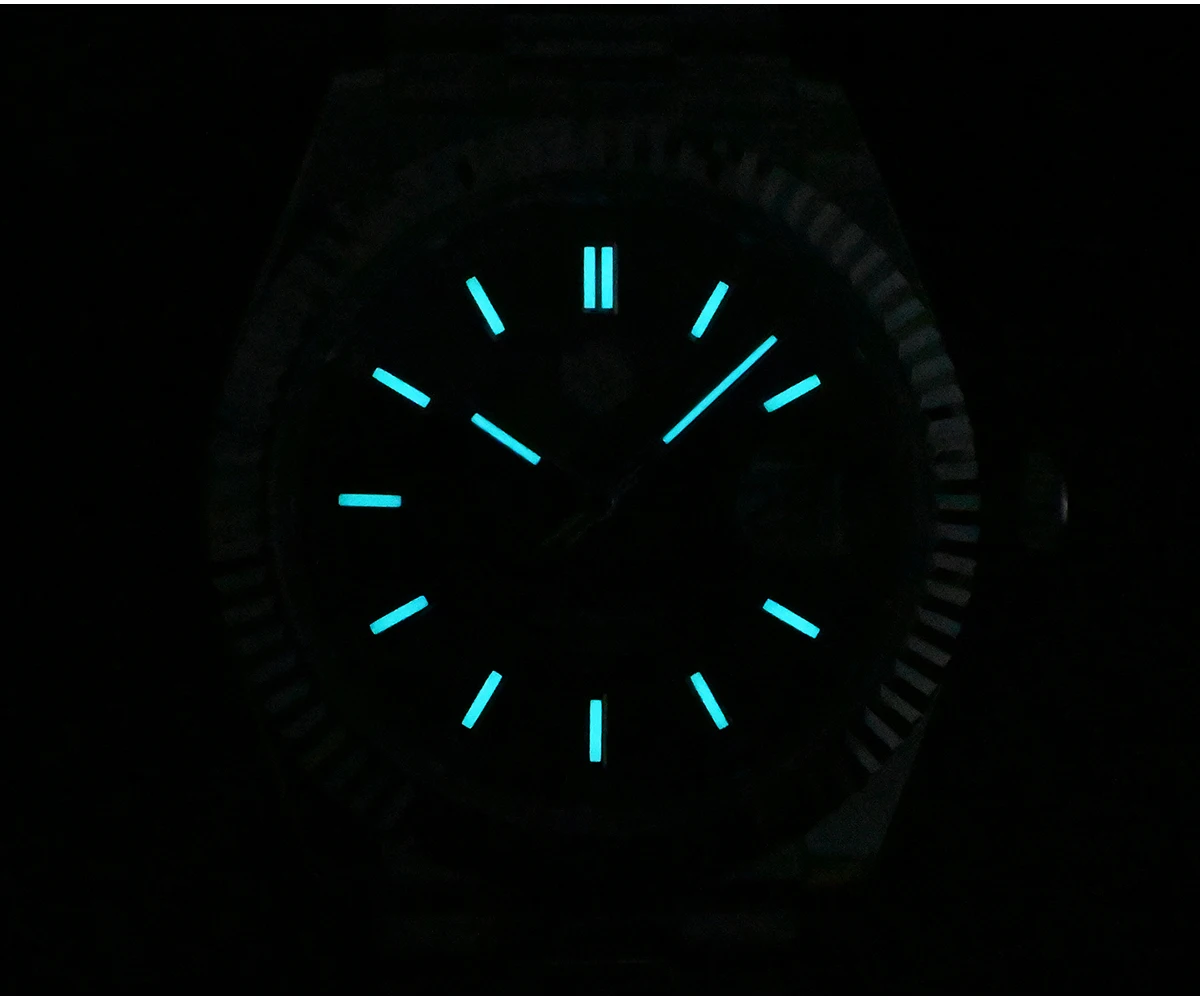 Стекло: сапфировое стекло, выпуклое зеркало с окошком даты, покрытие AR