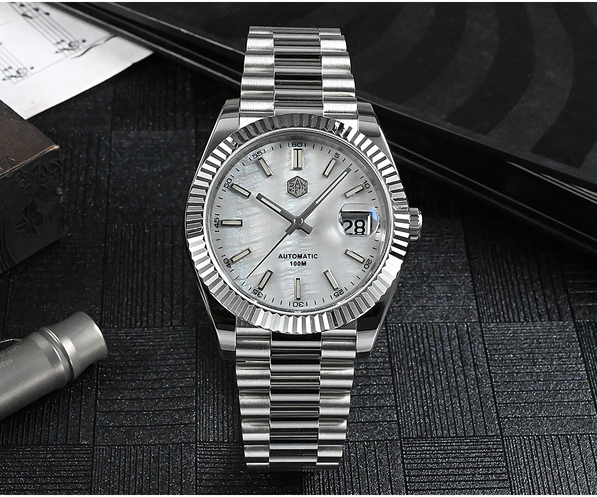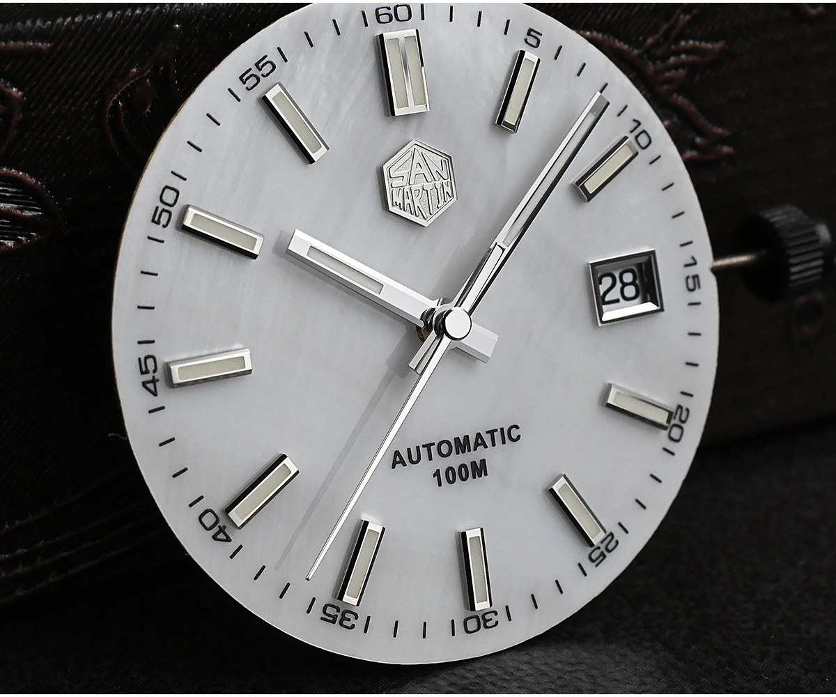 Натуральный жемчужный материал, различные цвета под солнцем. Уникальные визуальные эффекты для каждого циферблата