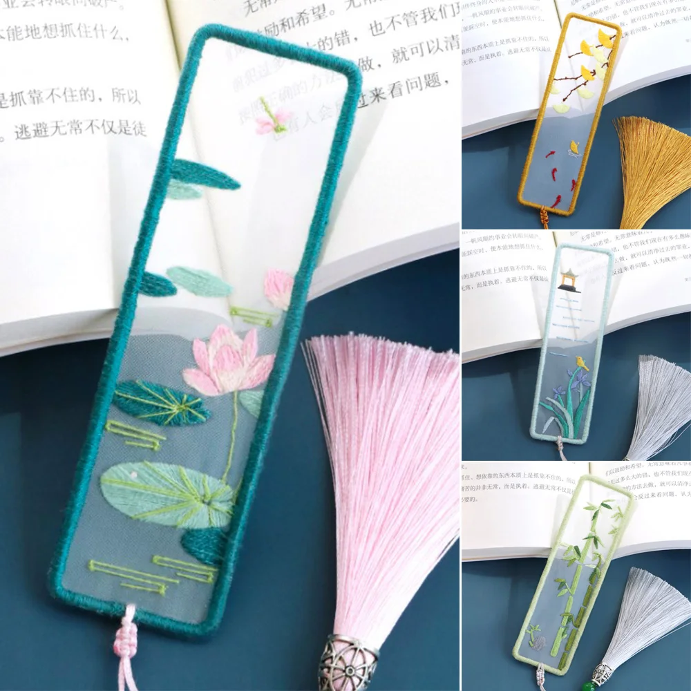 Вышитая книжная Закладка в китайском стиле, набор, книжка с кисточкой, Mark Book Clip, Набор для вышивки крестиком, иглопробивная игла, нить для поделок, орнамент