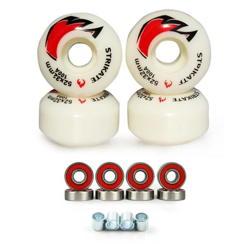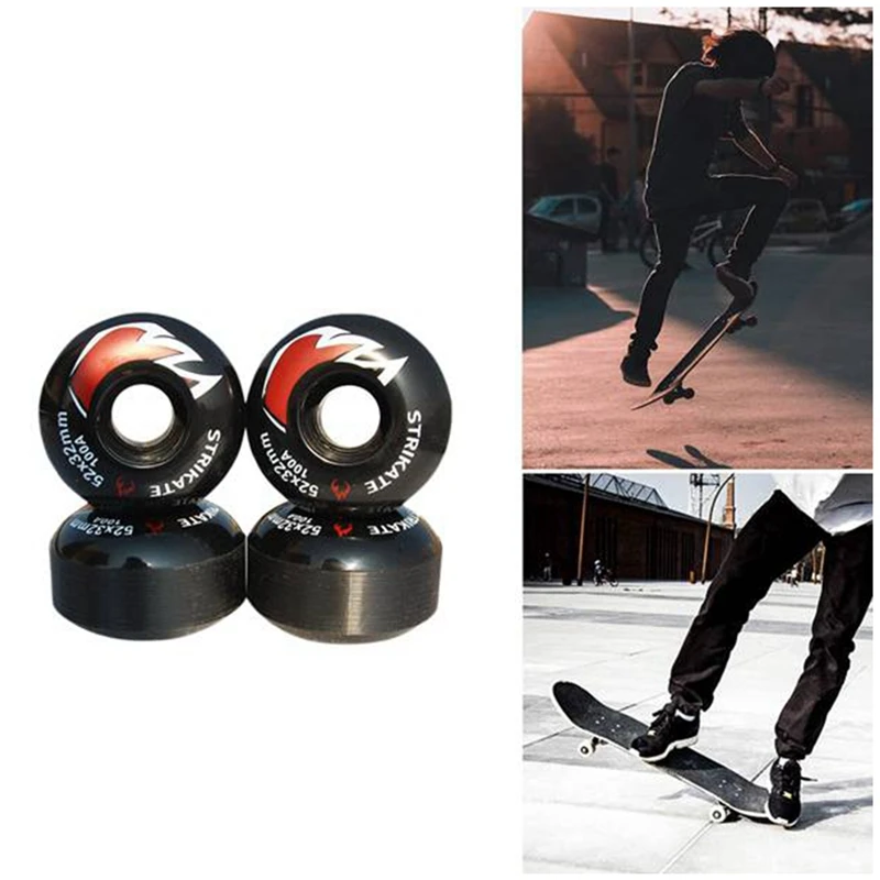 STRIKATE 4 шт скейтборд колеса PU Скейтборд части и бесплатно 8 шт Подшипники Черный 52 мм x 30 мм колеса 100A высокой плотности