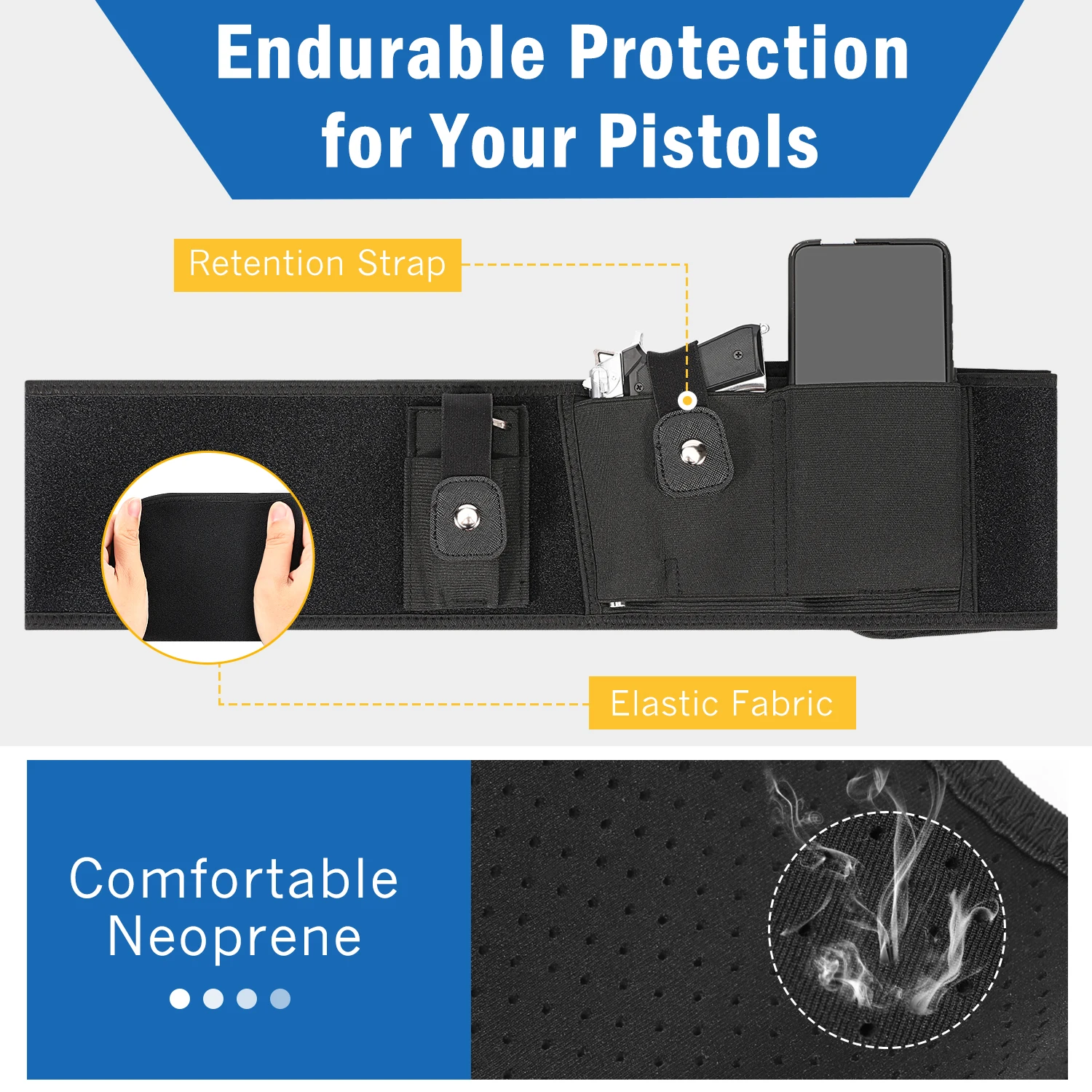 [Высококачественный материал]: Изготовлен из удобного неопрена и растягивающейся ткани, дышащий и прочный. Оснащен регулируемым ремнем, который может регулироваться в соответствии с индивидуальными привычками ношения. Мягкие и удобные материалы не повредят ни один из ваших предметов или частей.