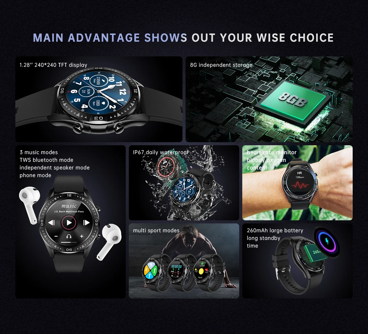 Время работы в режиме ожидания: Подключение Ble в течение 7-10 дней, двойной статус Bluetooth в течение 3-5 дней, непрерывный вызов/воспроизведение музыки в течение 5 часов