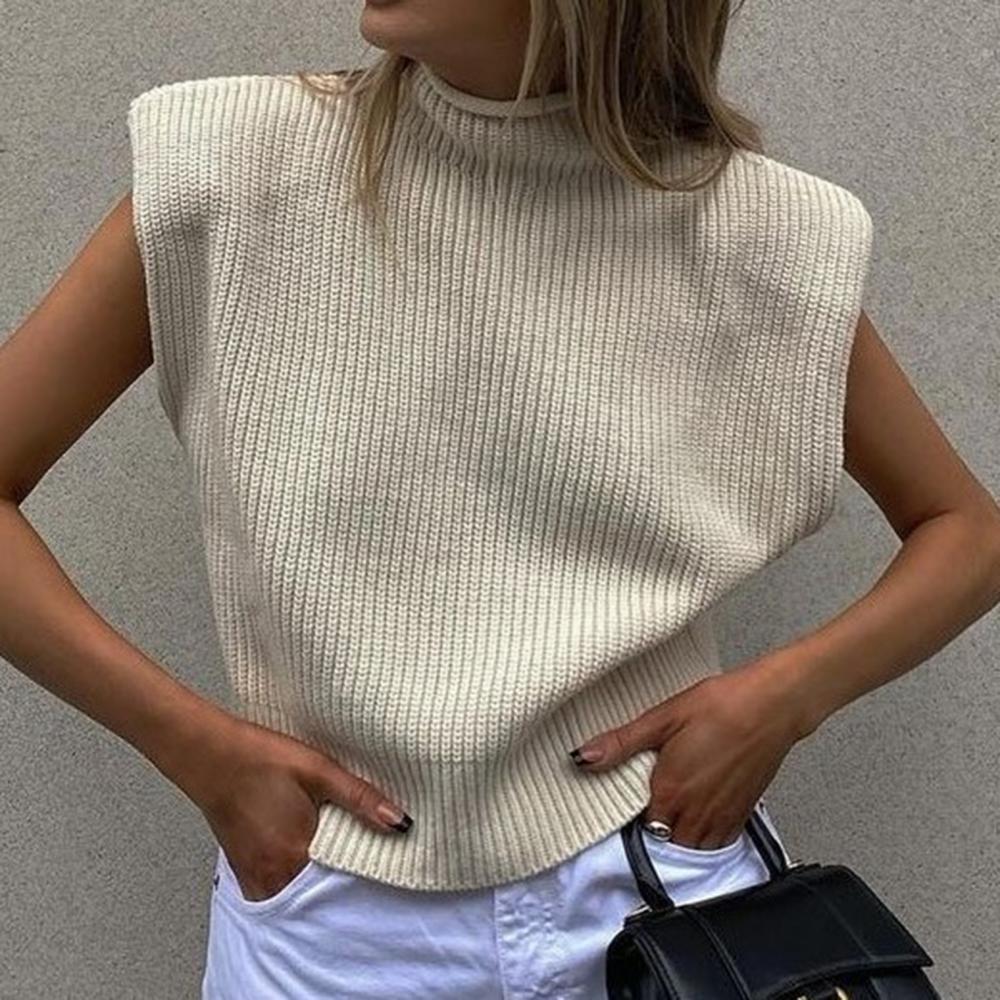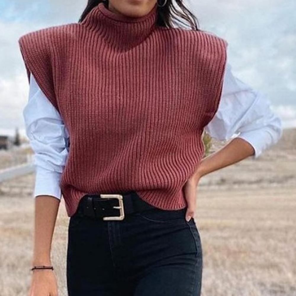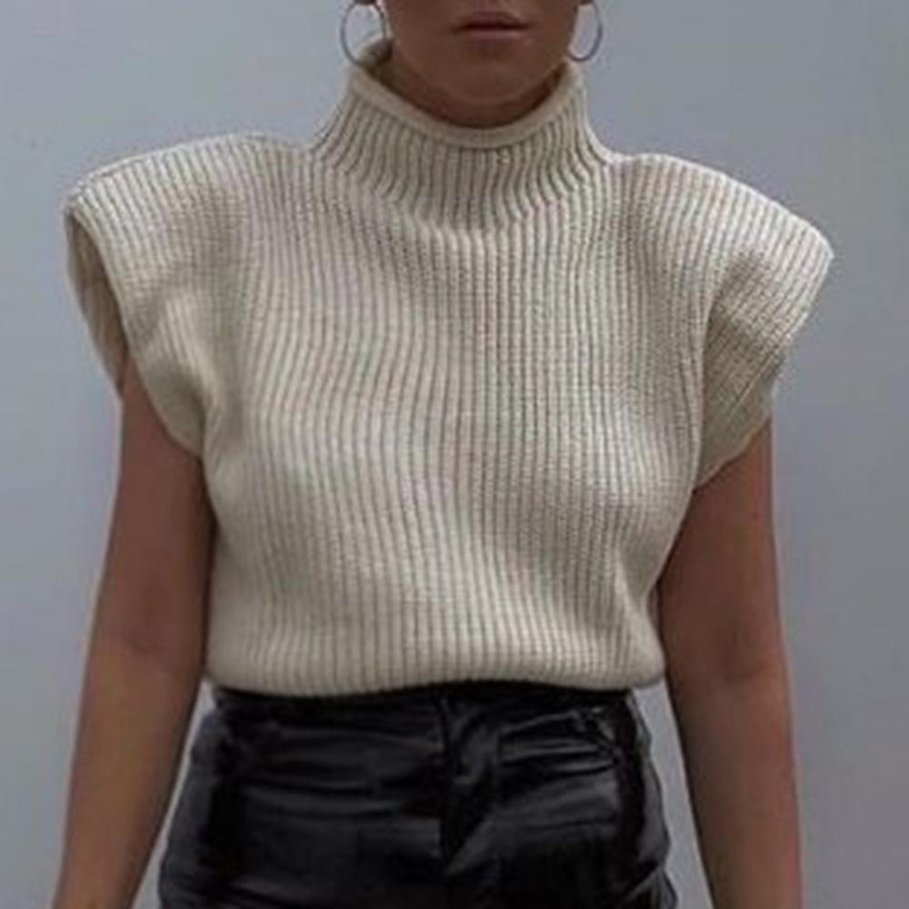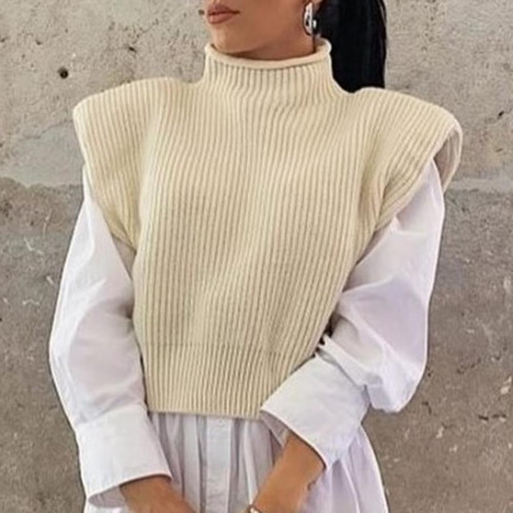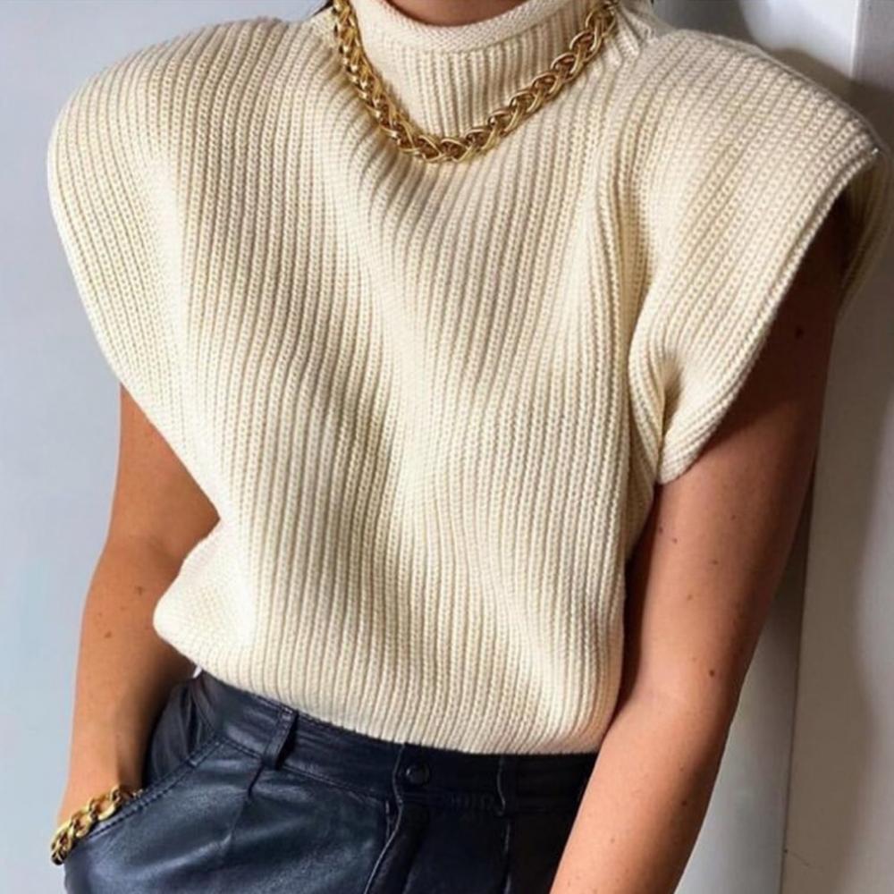 Этот джемпер без рукавов и с подплечниками шикарный и стильный.