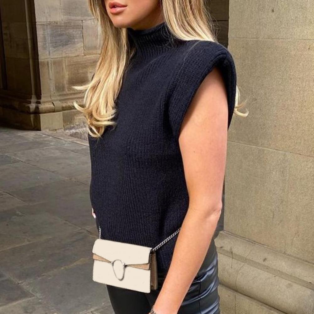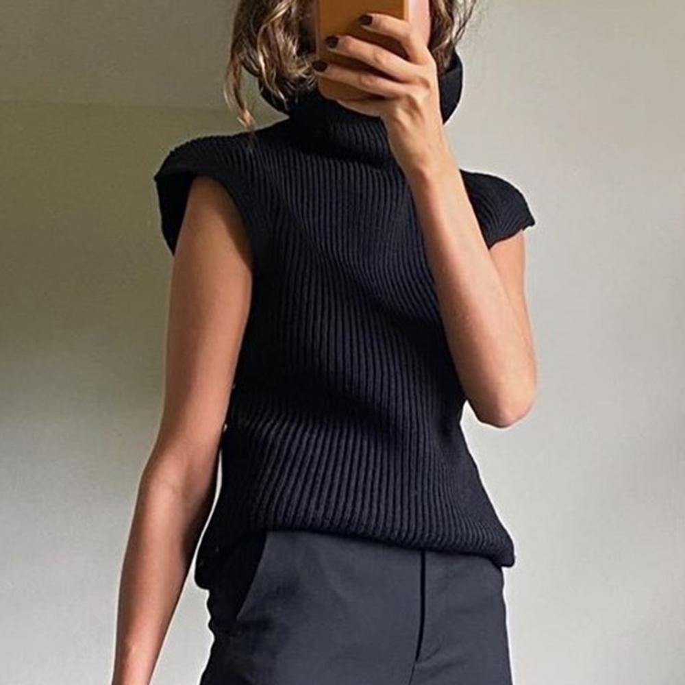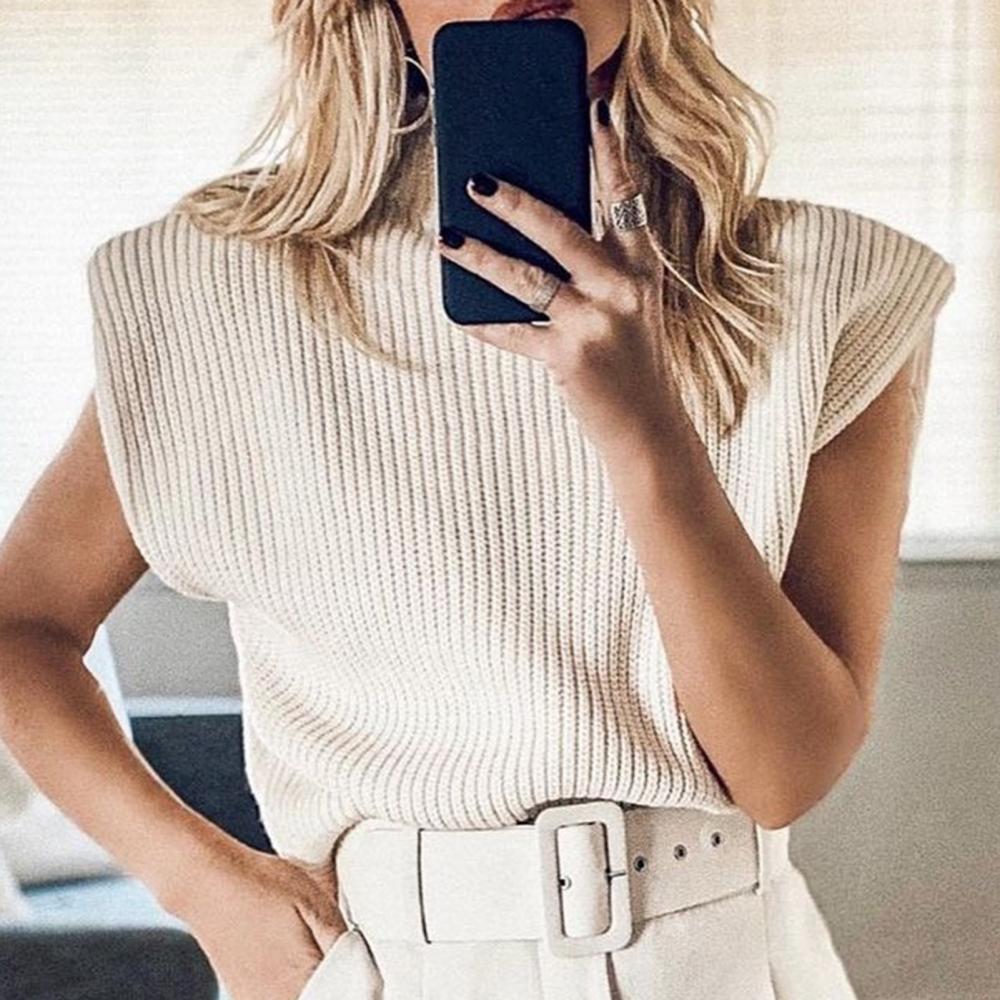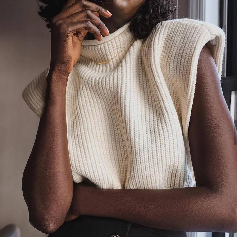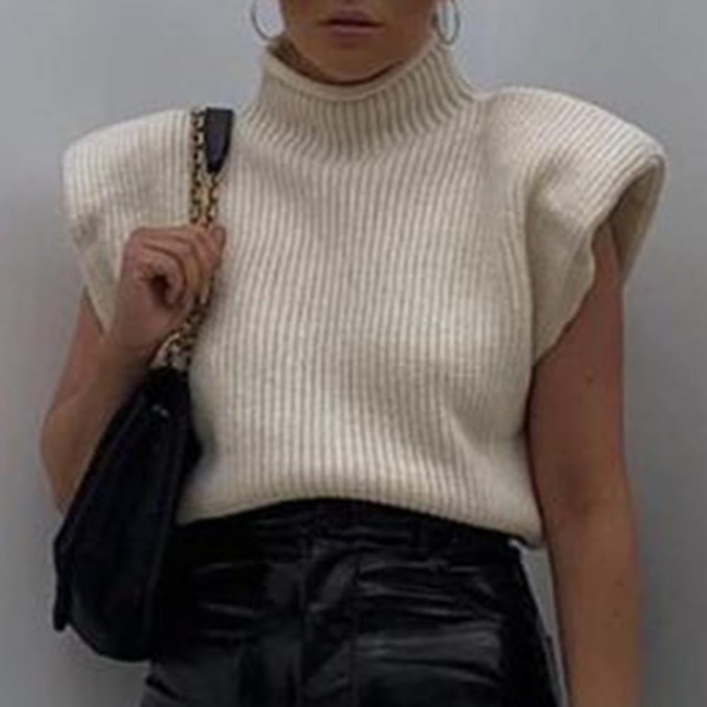 Этот джемпер без рукавов и с подплечниками шикарный и стильный.