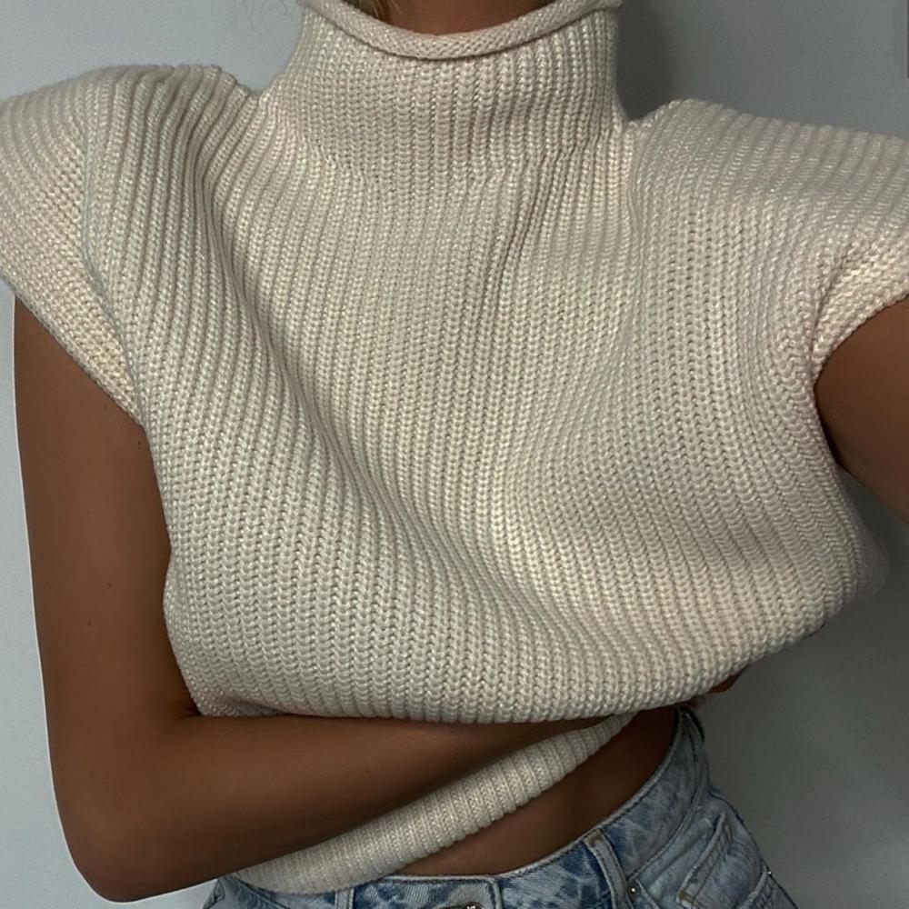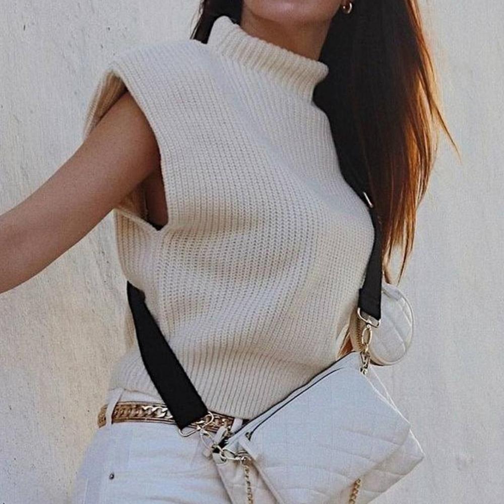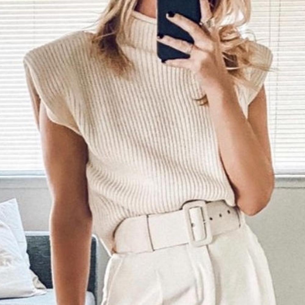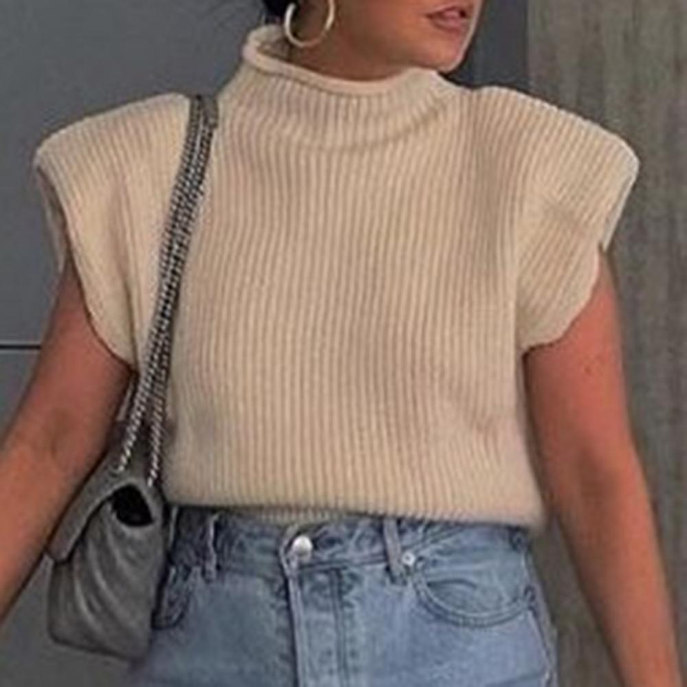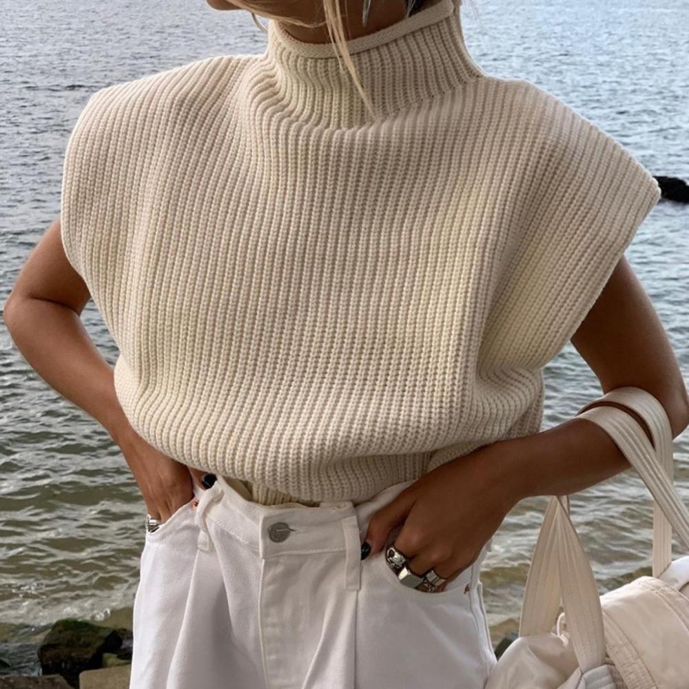 Этот джемпер без рукавов и с подплечниками шикарный и стильный.