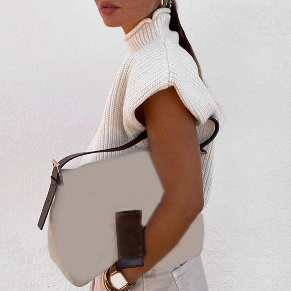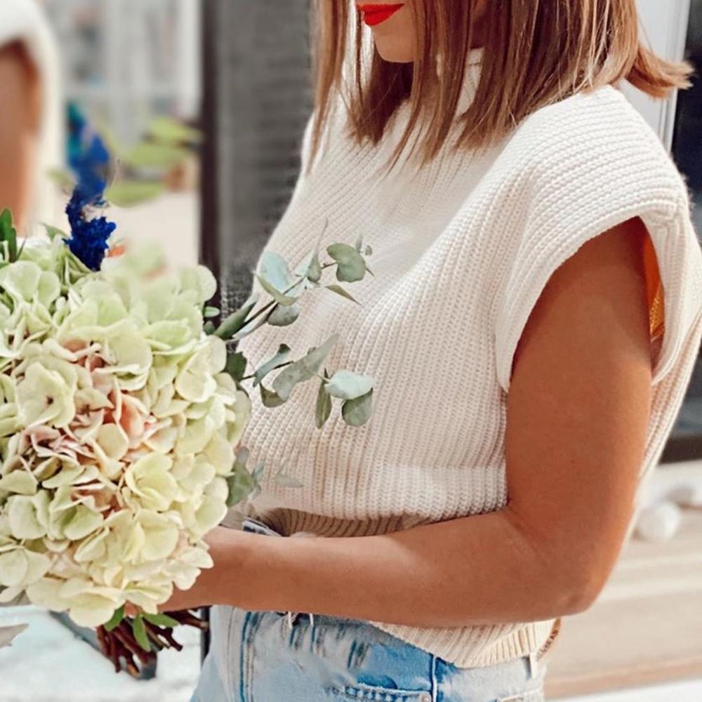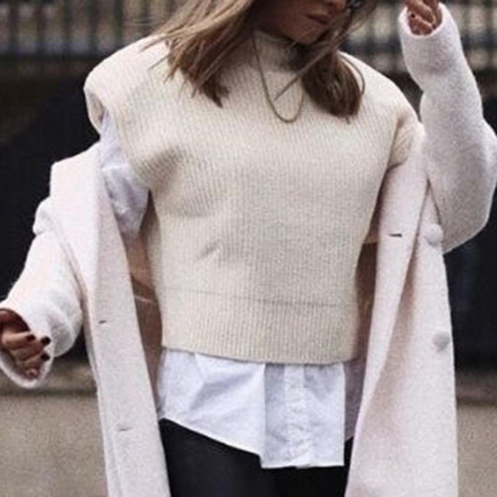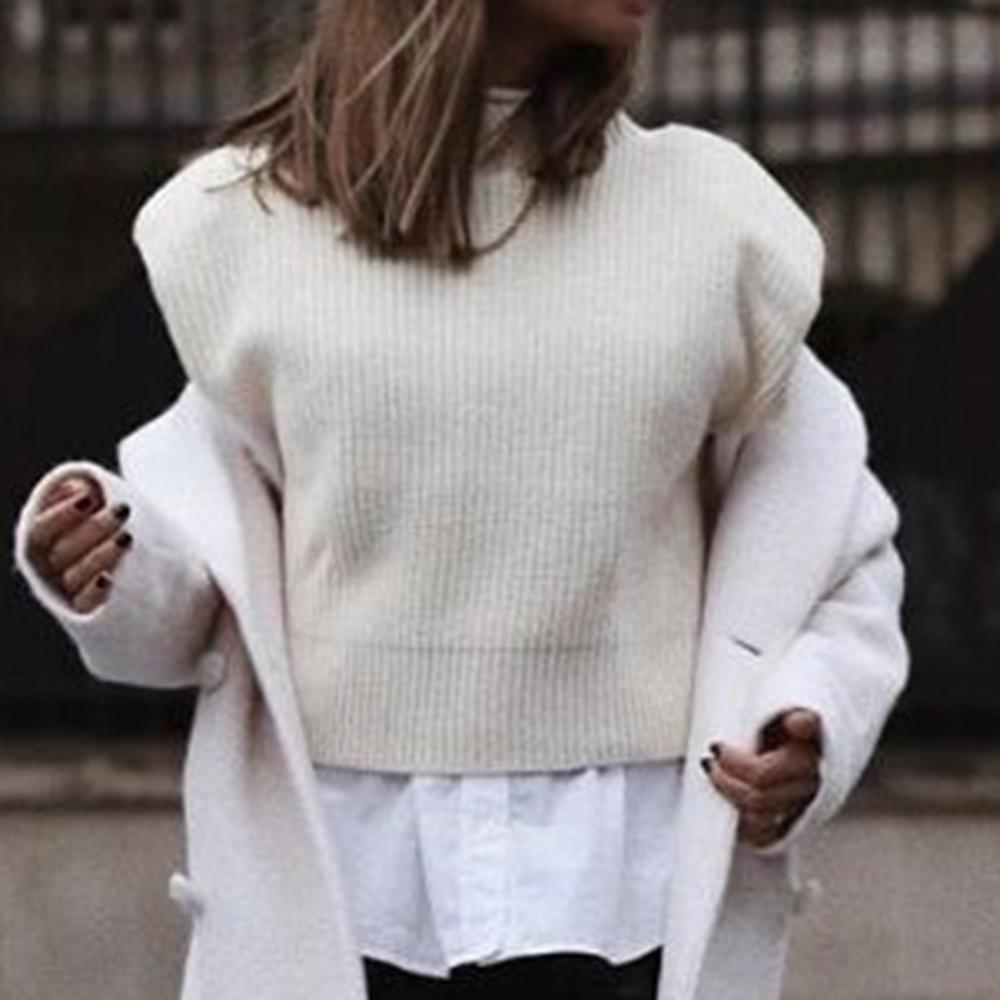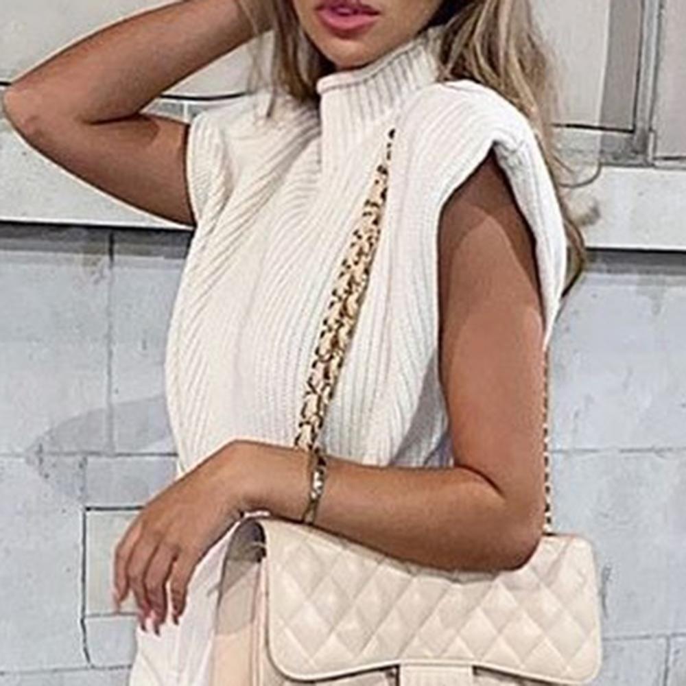 Этот джемпер без рукавов и с подплечниками шикарный и стильный.