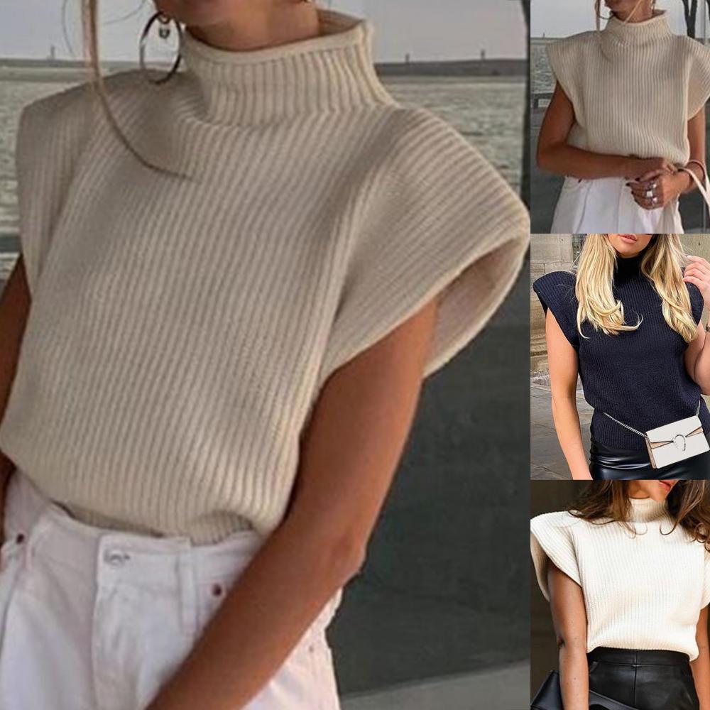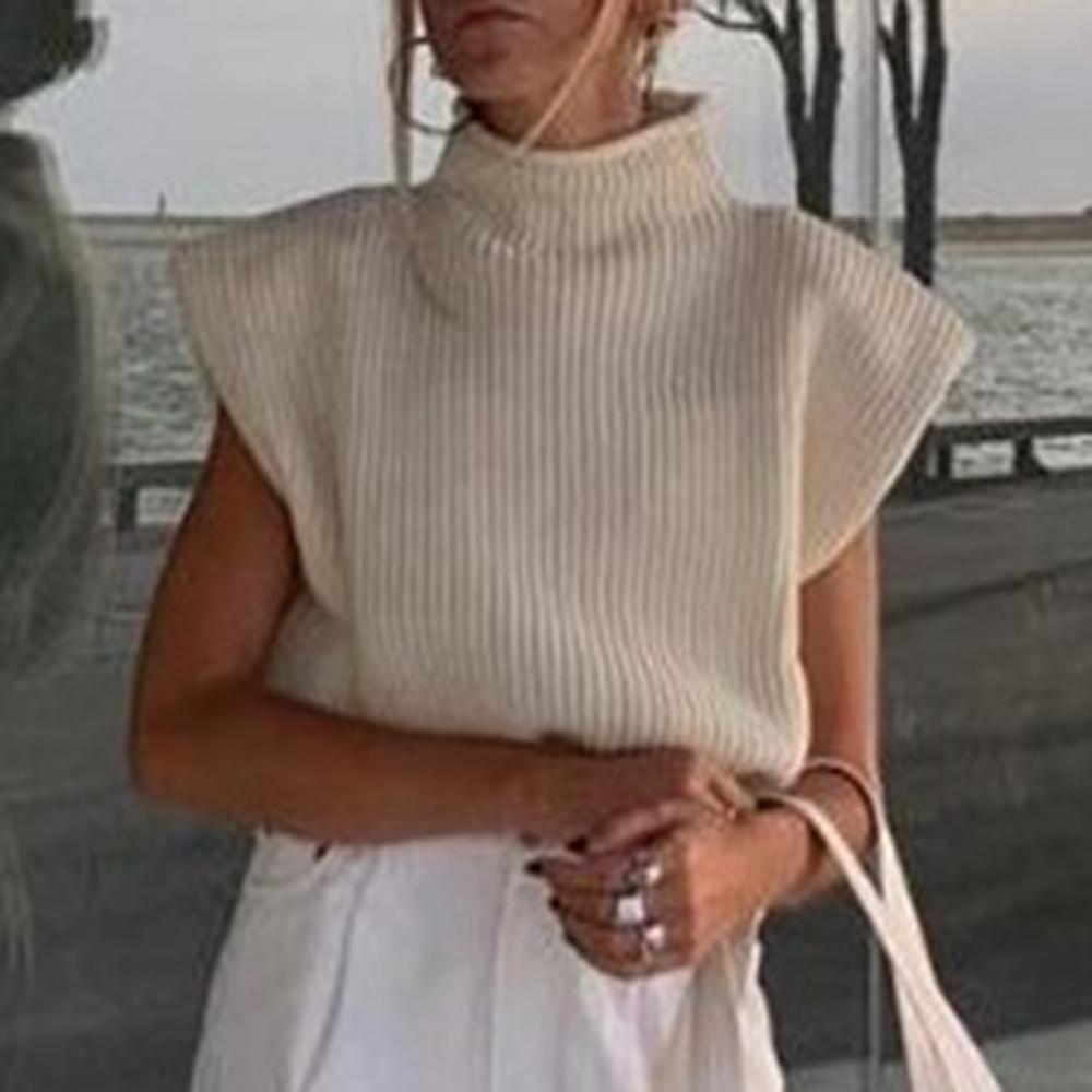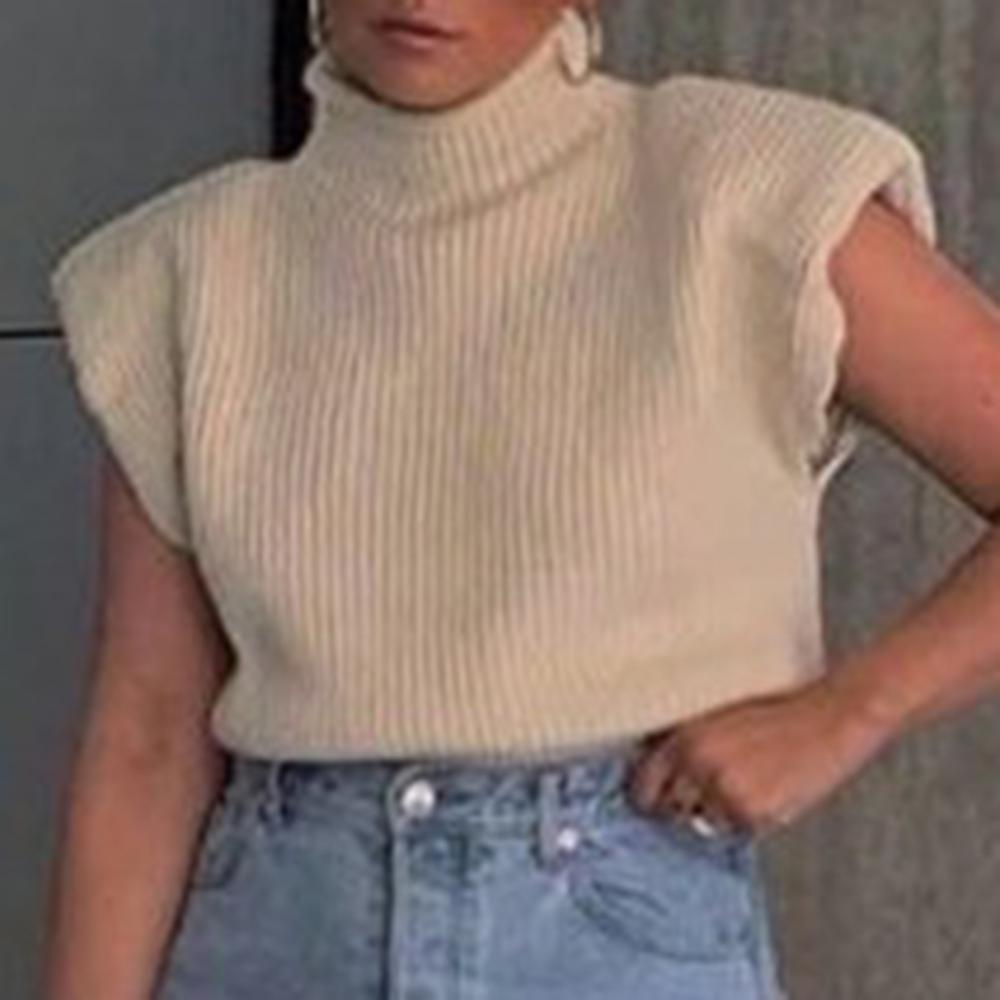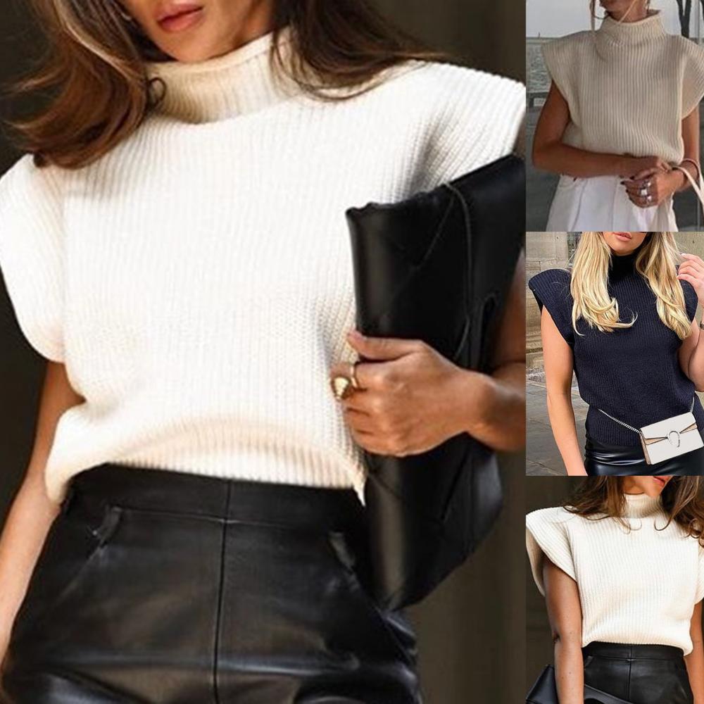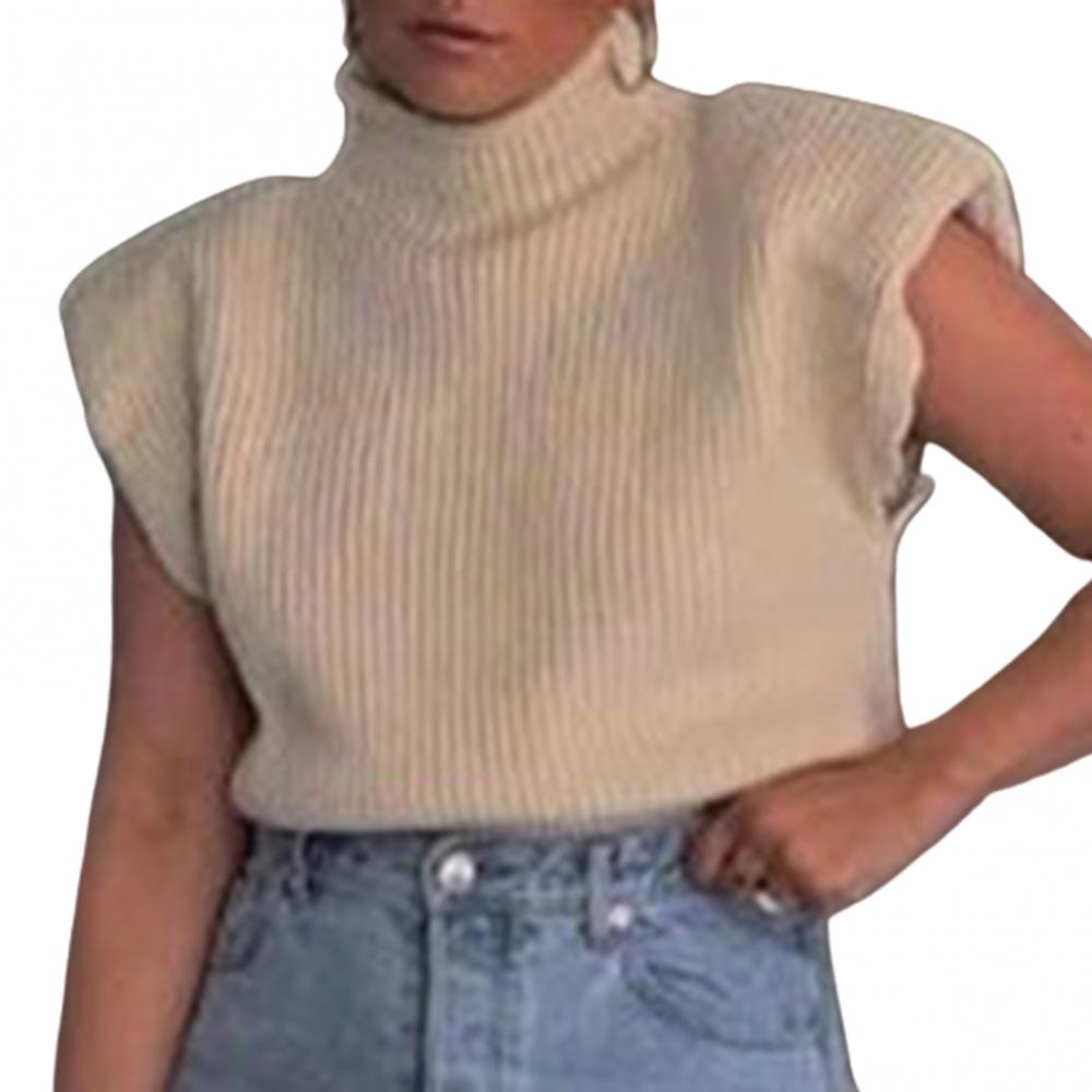 Женский осенне-зимний свитер жилет без рукавов с высоким воротником вязаные джемперы