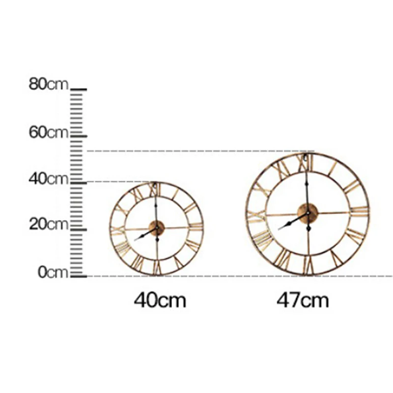 40/47 см Nordic металла с римскими Цифрами Настенные Часы Ретро железа круглый украшения дома