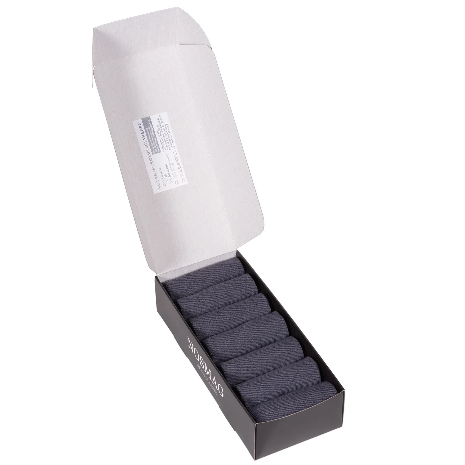Набор из 7 пар однотонных коротких носков. Вяжутся на современном оборудовании российской фабрики "Челны Текстиль". На 90% состоят из хлопка и подарят комфорт в течение всего дня, а входящие в состав полиамид и лайкра делают носки более плотными, эластичными и износостойкими. Носки компактно упакованы в фирменную подарочную коробку из картона.