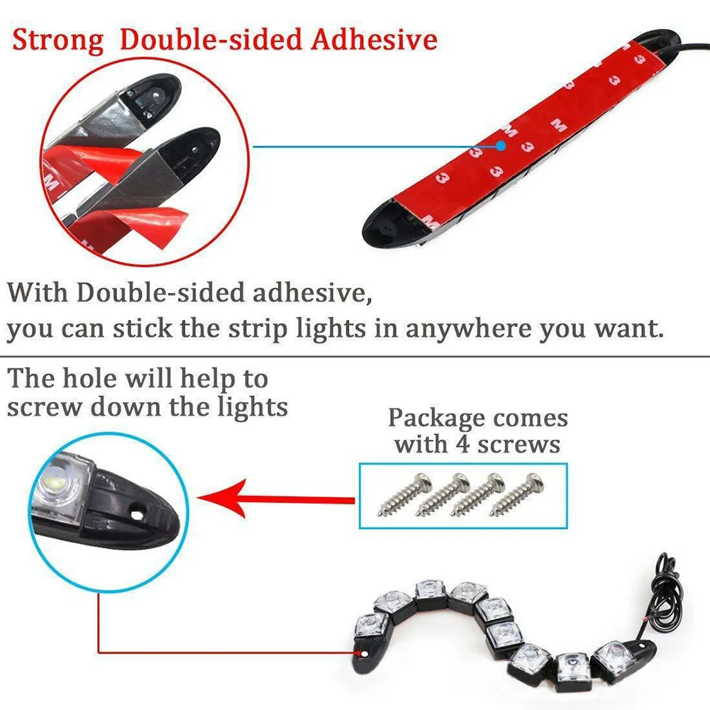 * 4. Многофункциональность: Может использоваться для дневных ходовых огней, противотуманных огней, стоп-сигналов, задних фонарей, декоративных огней, номерных знаков, дверных огней, ходовых огней, просто измените методы проводки.