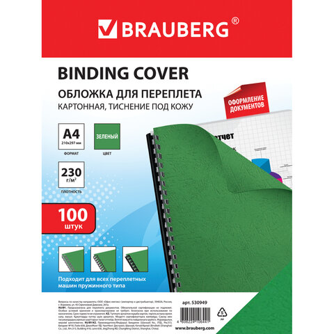 Обложки для переплета BRAUBERG придадут документам эстетичный внешний вид и защитят от повреждений. Предназначены для переплета документов брошюровщиком с помощью пластиковых и металлических пружин. Актуальны для создания деловых брошюр.