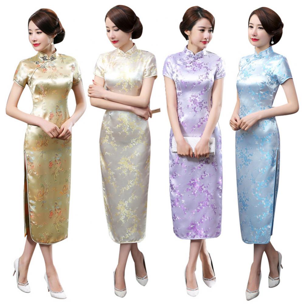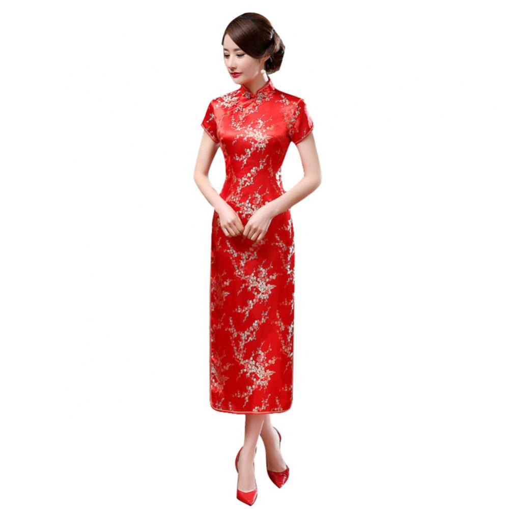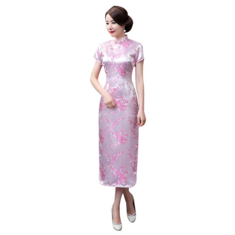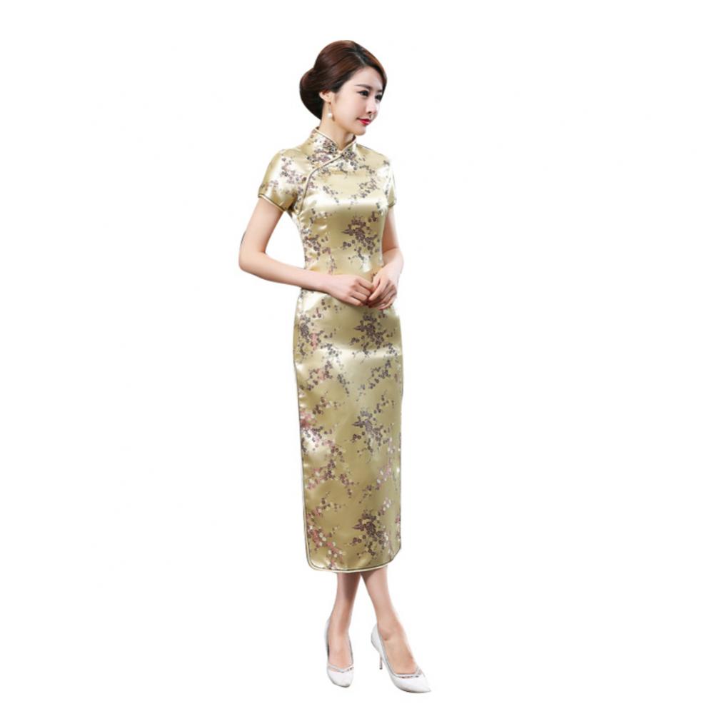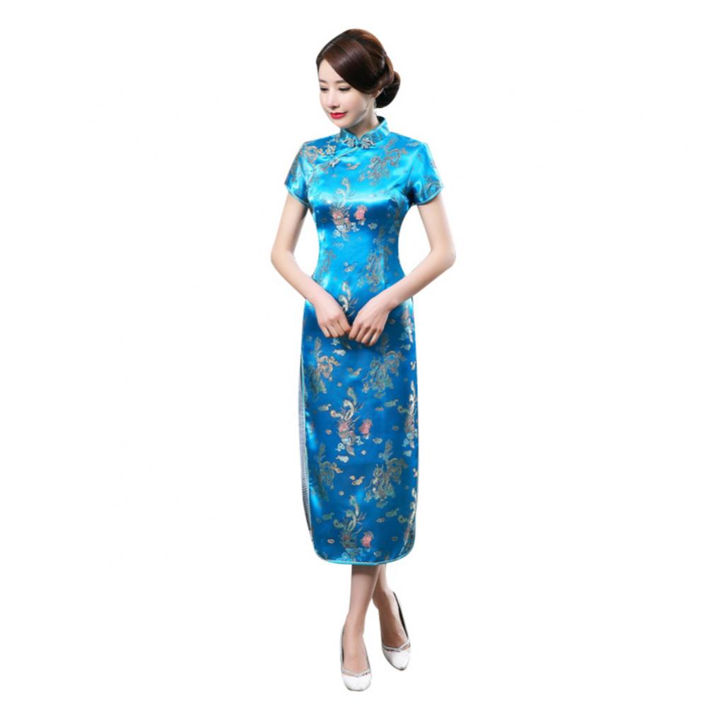 Традиционное китайское женское длинное вечернее платье Cheongsam подружки невесты с коротким рукавом