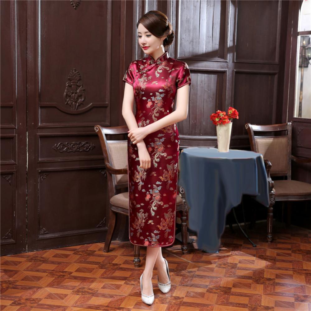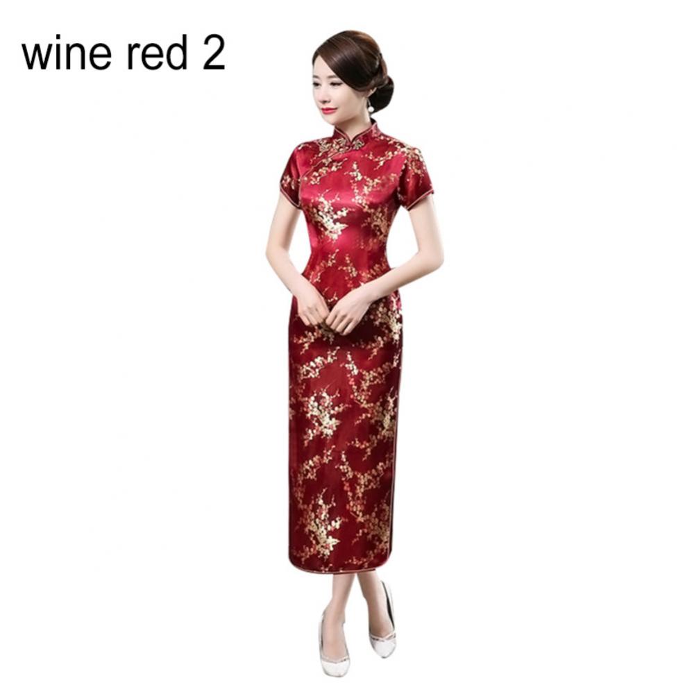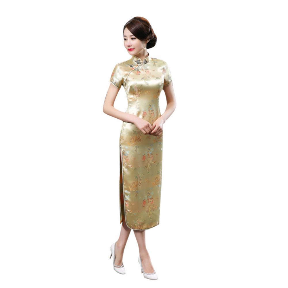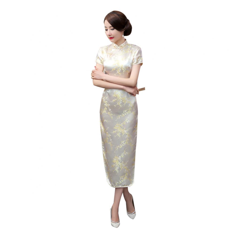 Традиционное китайское женское длинное вечернее платье Cheongsam подружки невесты с коротким рукавом