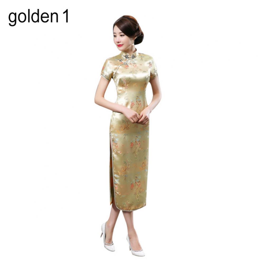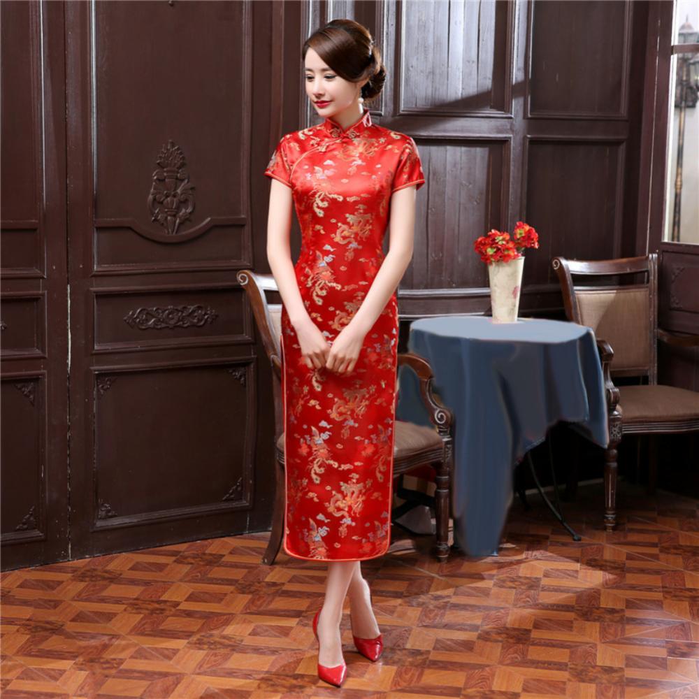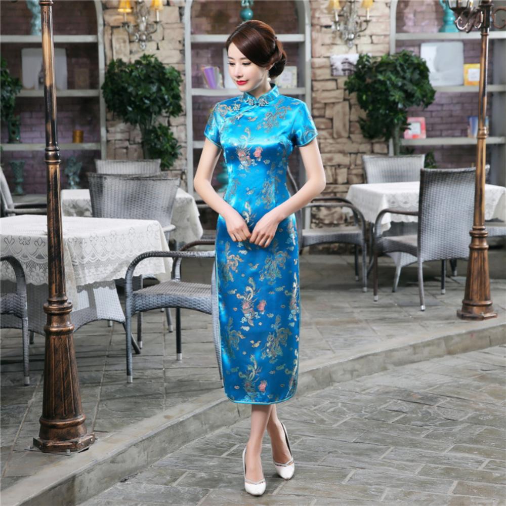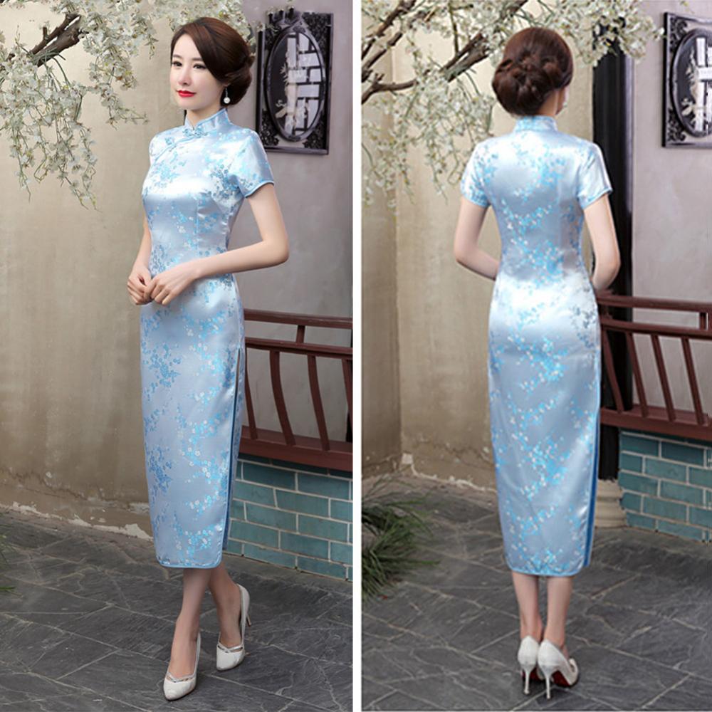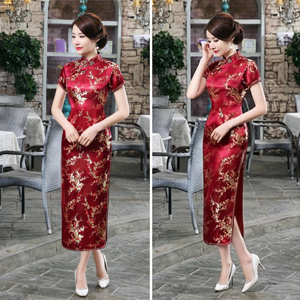 Традиционное китайское женское длинное вечернее платье Cheongsam подружки невесты с коротким рукавом