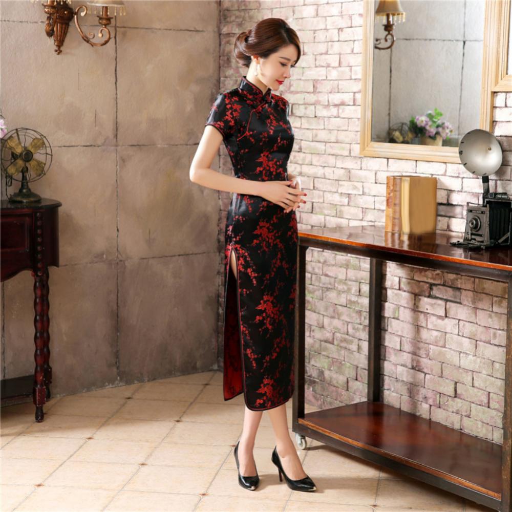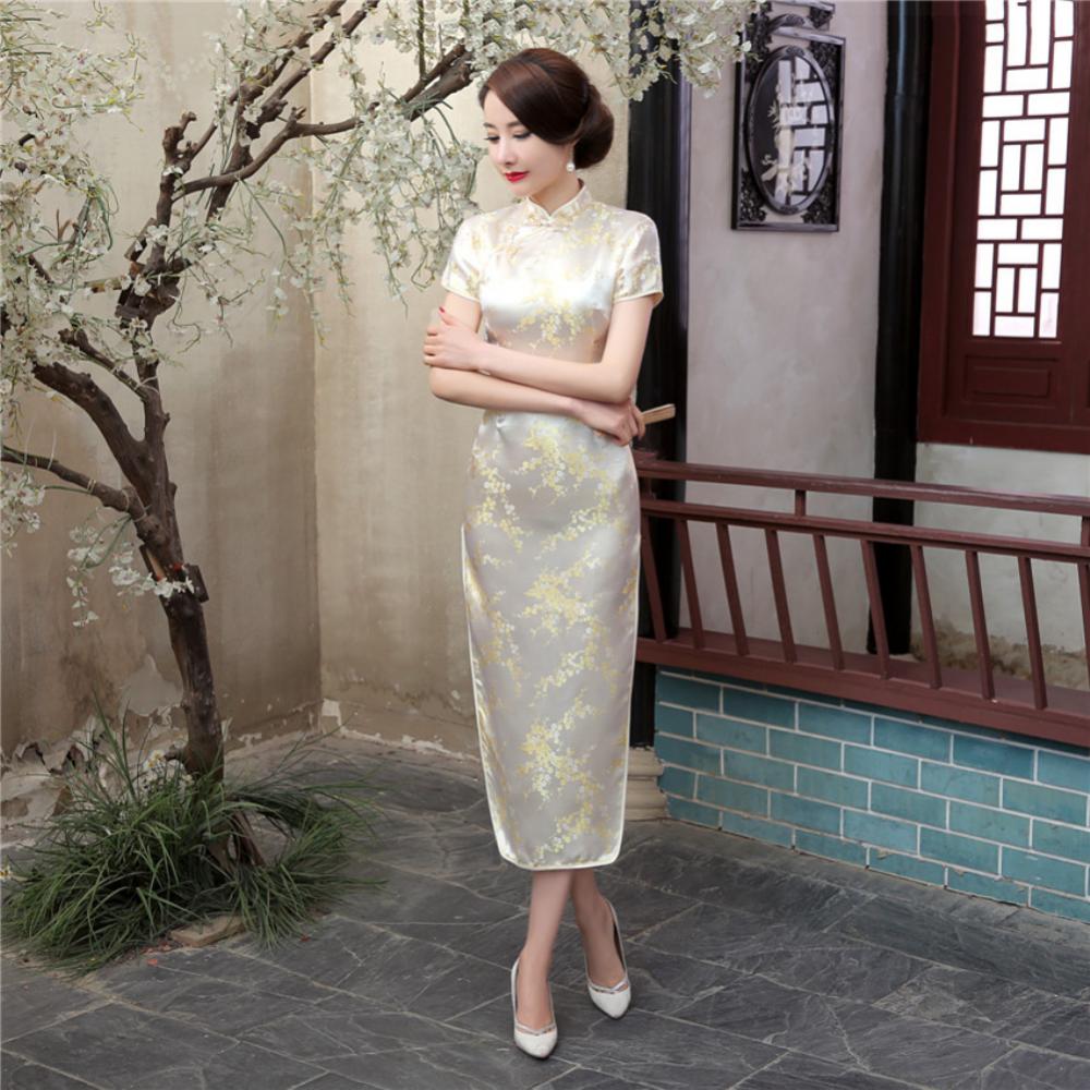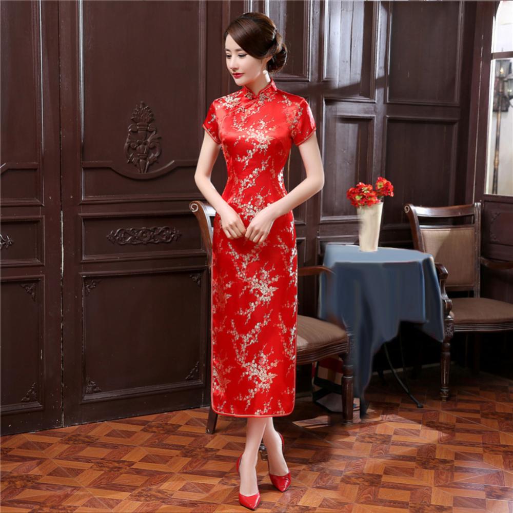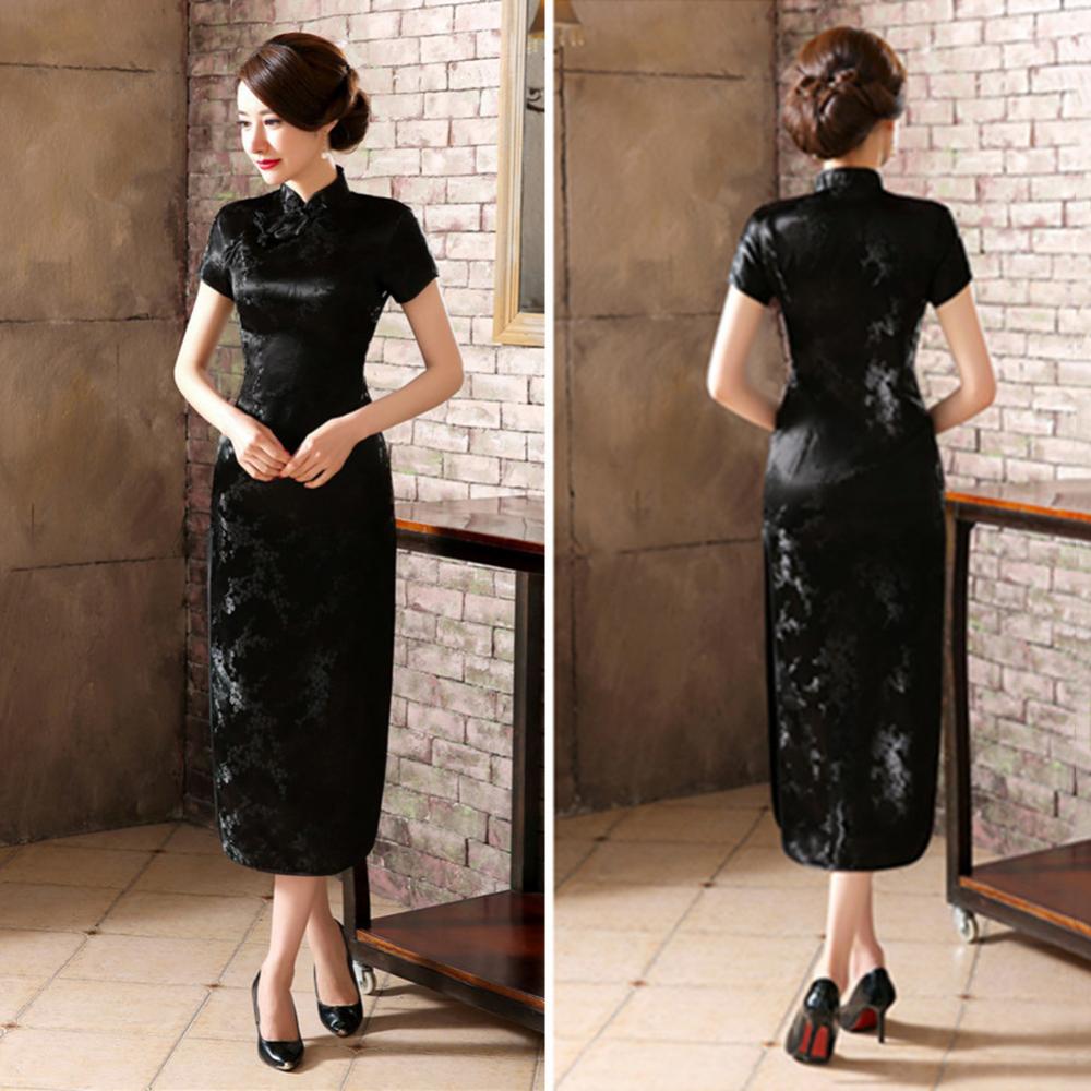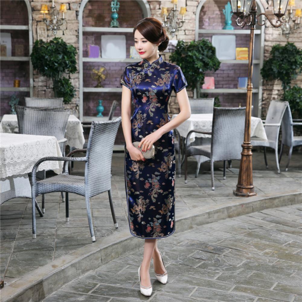 Традиционное китайское женское длинное вечернее платье Cheongsam подружки невесты с коротким рукавом