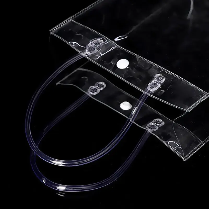 Прочная прозрачная вместительная сумка из ПВХ с защелкой.