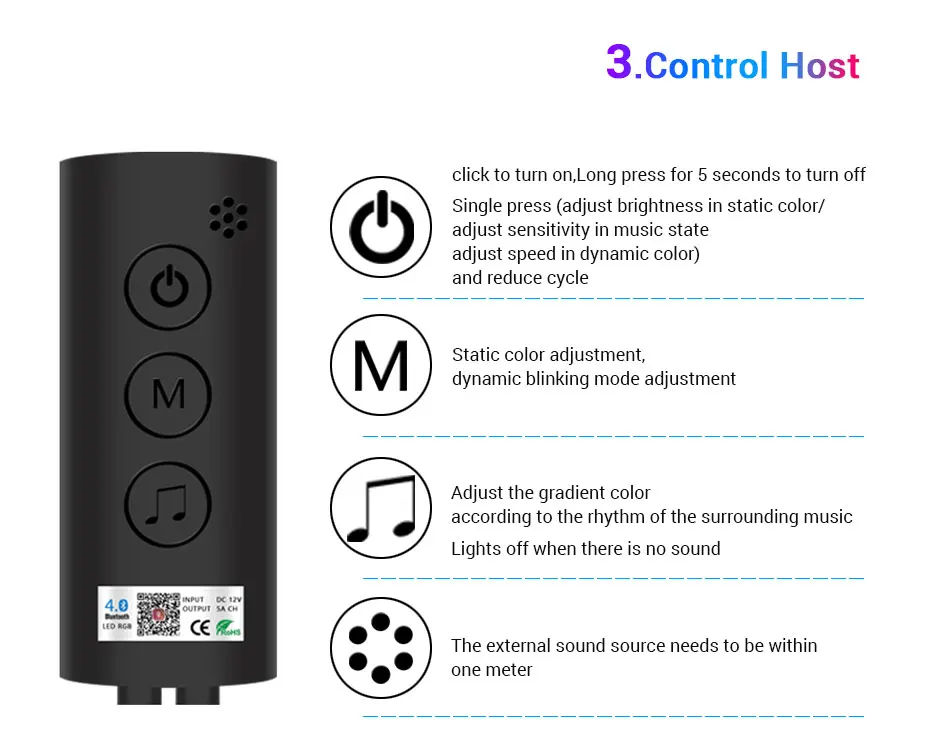 -Новый окружающий светильник «Три в одном», вы можете изменить режим и цвет через приложение/пульт дистанционного управления/коробку.
