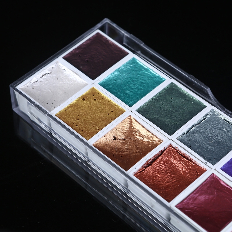 Особенности: 1.12 цветов перламутровой акварельной краски. Цвет чистый и насыщенность Высокая. Пигменты в этих набор акварельных красок имеют очень хорошую Емкость покрытия и предлагают быстрое высыхание.