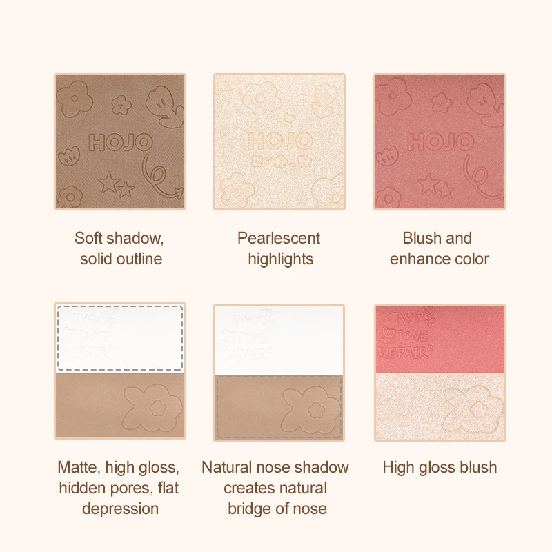 Одна пластина является многоцелевой, и она включает в себя Контурирование, пудру для бровей, мелирование, румяна и волосяную линию модификации в одном, легко создавая изысканный трехмерный макияж.