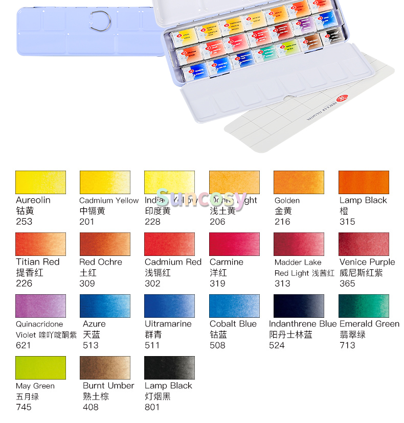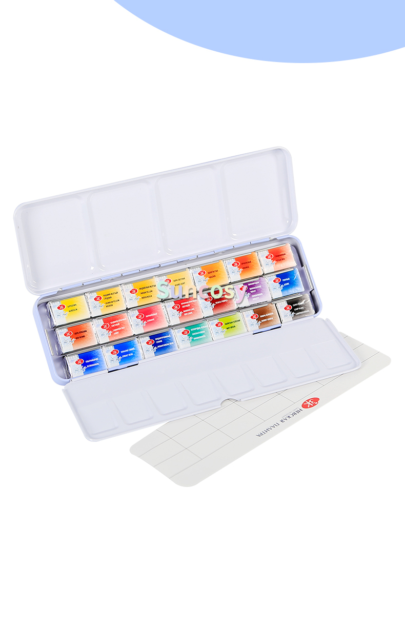 Белые ночи®Очень хорошоПрофессиональный набор акварельных красок художника, 21 цвет в 2,5 мл кювет в олова металла чехол с палитрой. Сделано в России.