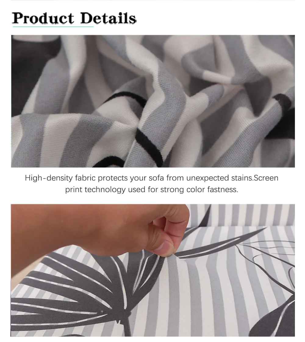 -Ткань высокой плотности защищает диван от неожиданных пятен. -Технология трафаретной печати используется для высокой цветостойкости. -Эластичная ткань для легкого нанесения. -Бандаж и губчатая планка обеспечивают идеальное прилегание и нескользящее сцепление. -Доступны в различных цветах и дизайне узоров, чтобы соответствовать любому интерьеру. -Можно использовать дома, в отеле или на специальных мероприятиях. -Поставляется в 4 размерах, подойдет для различных диванов и диванов. -Полностью машинная стирка.